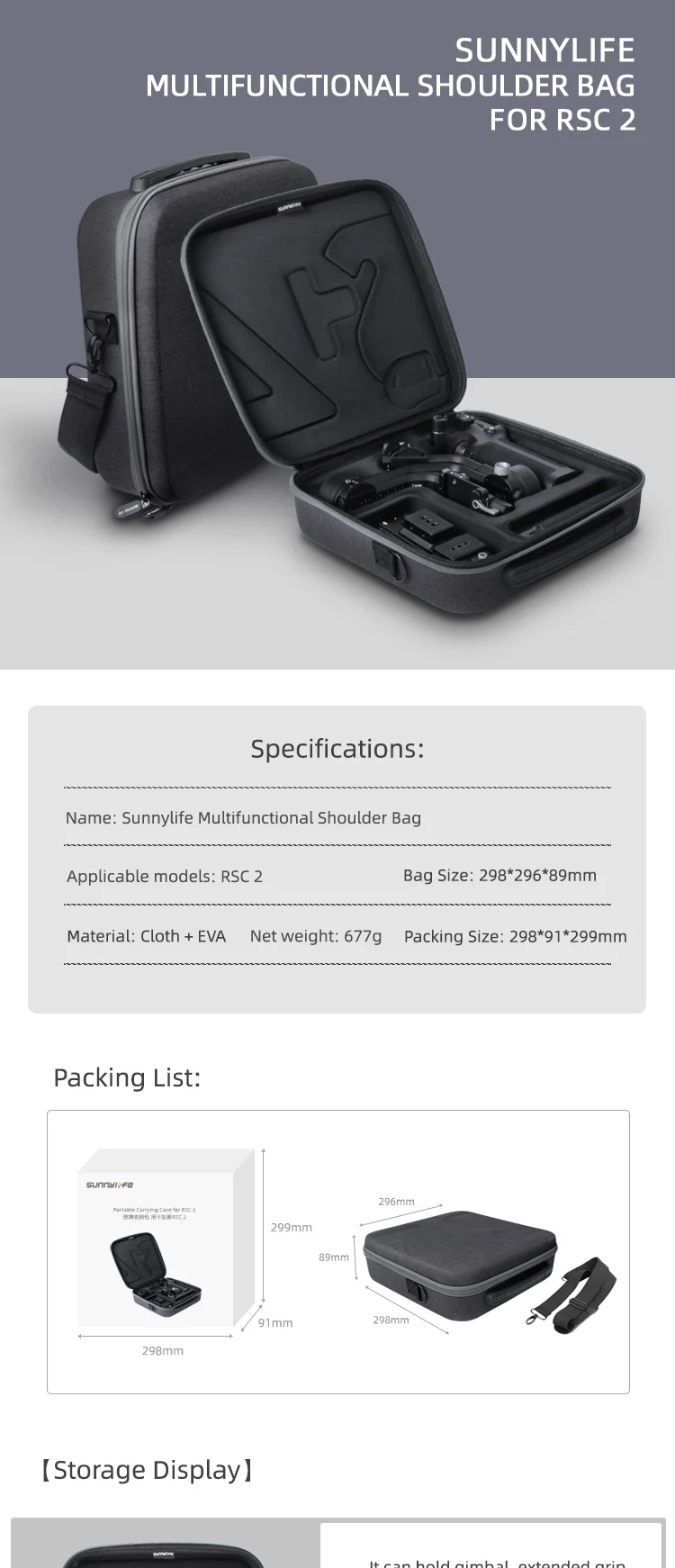 Sunnylife дляDJI Ronin-SC 2Многофункциональный чехол для переноски EVA сумка через плечо