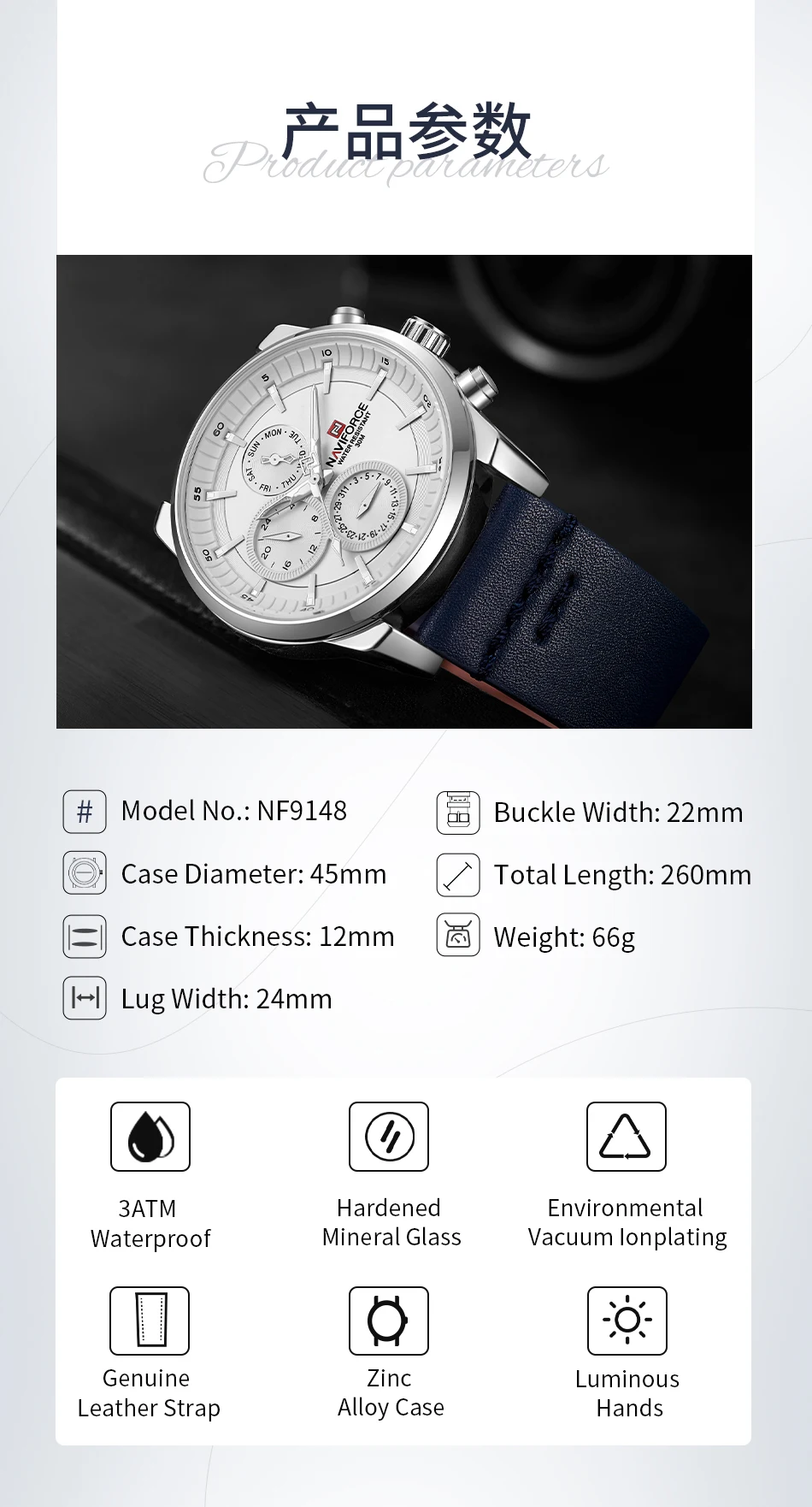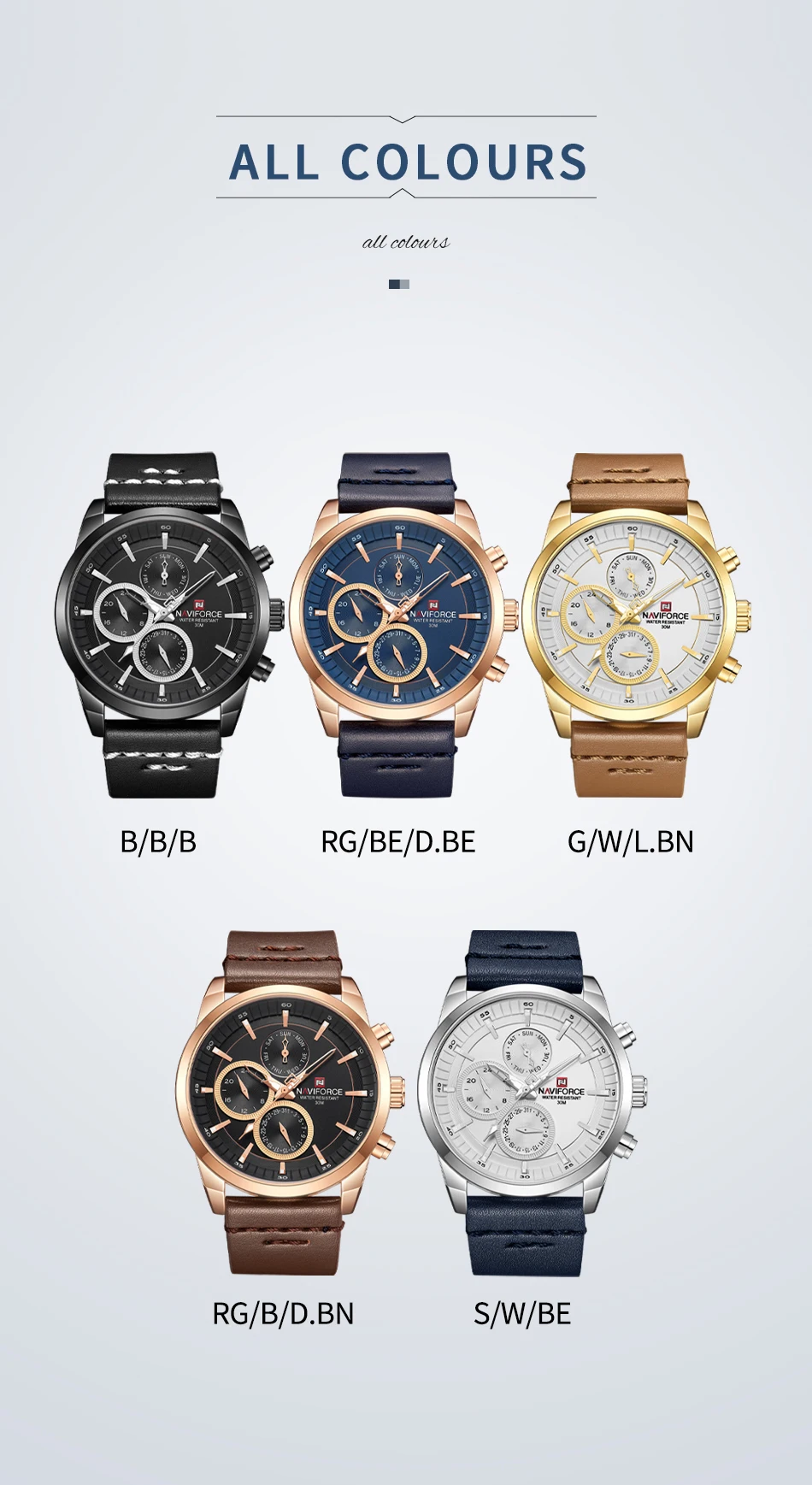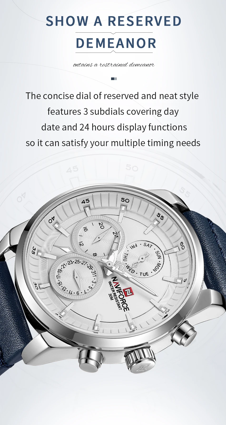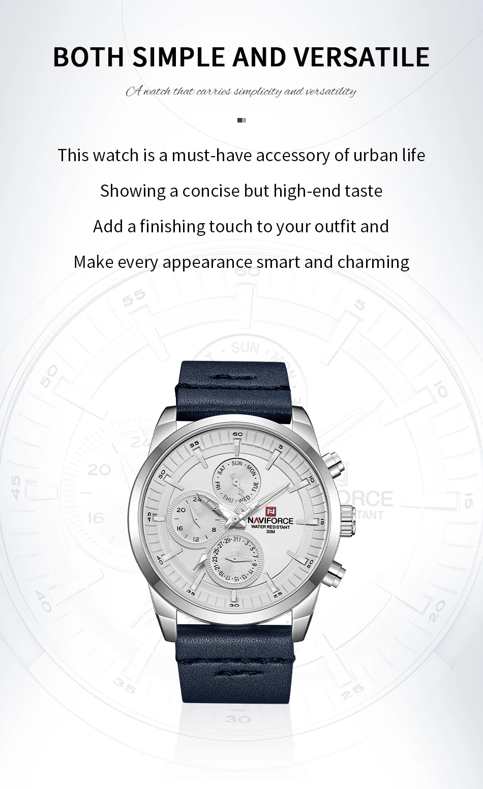 NAVIFORCE Men's Watches Fashion Business Waterproof Wristwatch Casual Genuine Leather Sports Quartz Date Clock Relogio Masculino