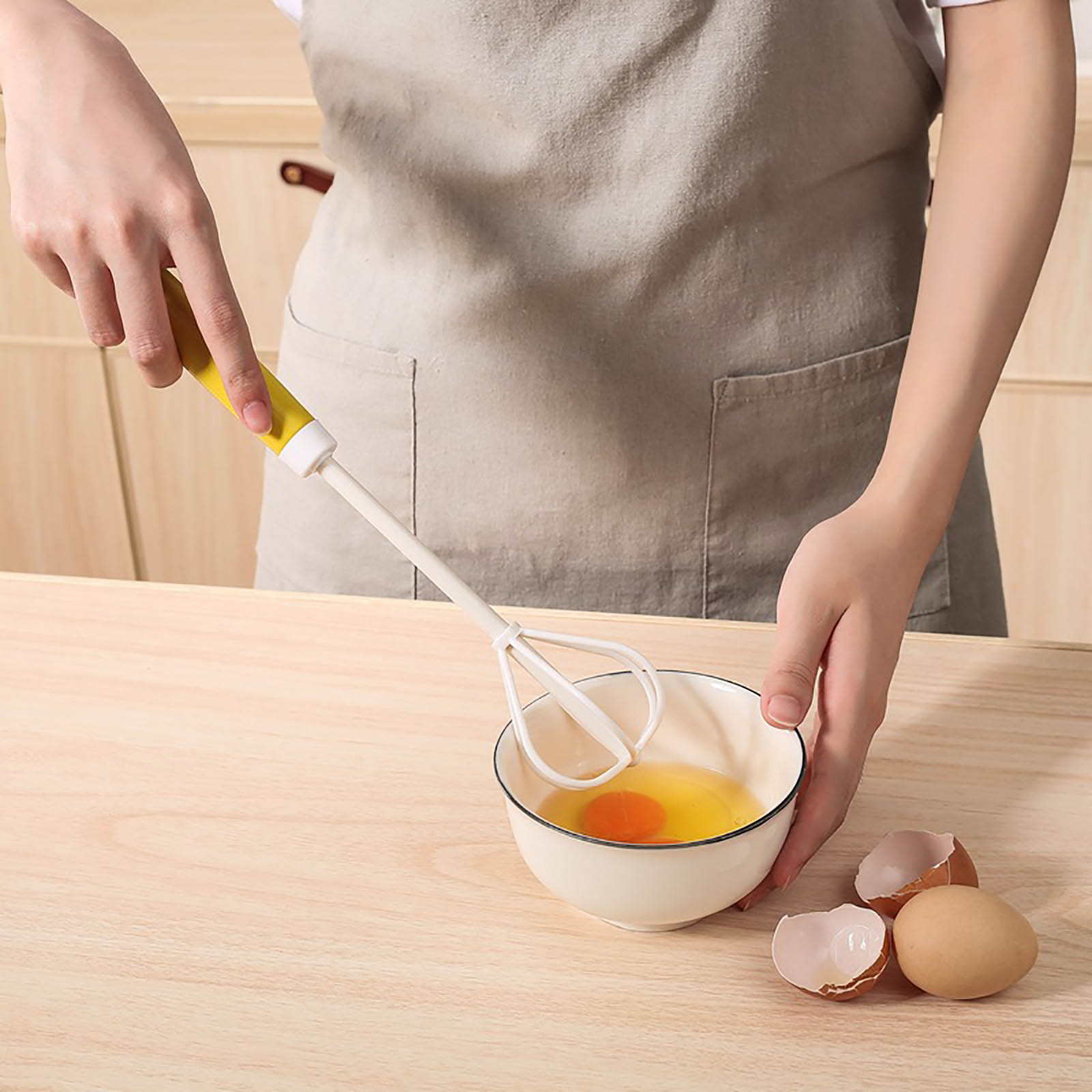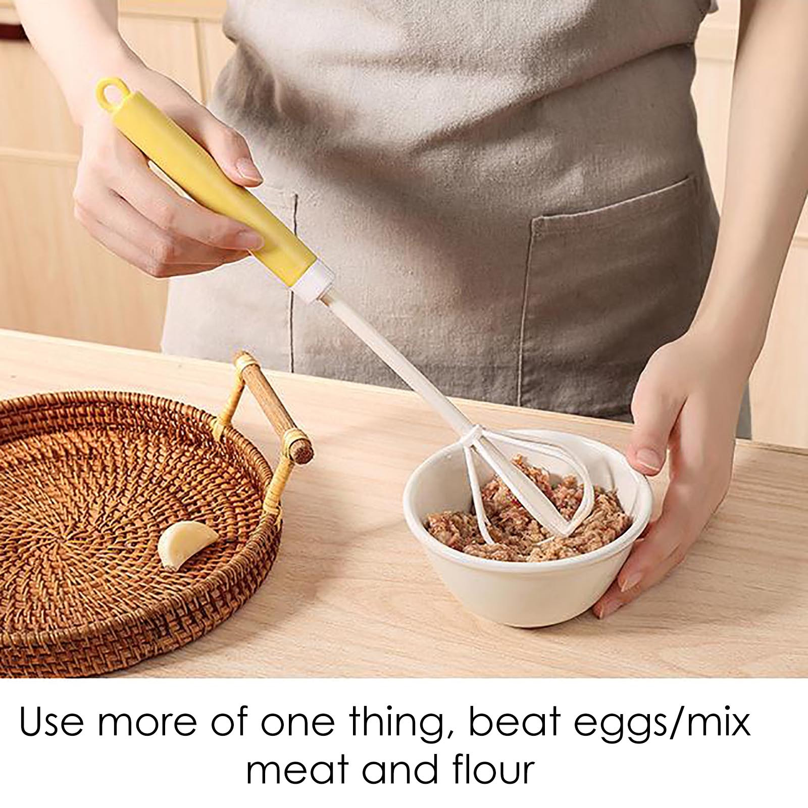 Easy to use: This whisk has a semi-automatic function. Rotate the mixing head, just push it downwards and loosen it upwards to mix quickly and evenly, saving time and effort.