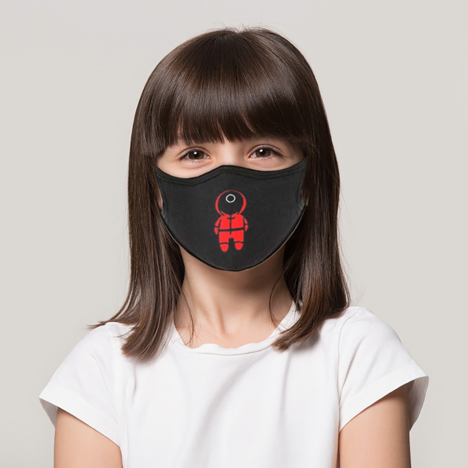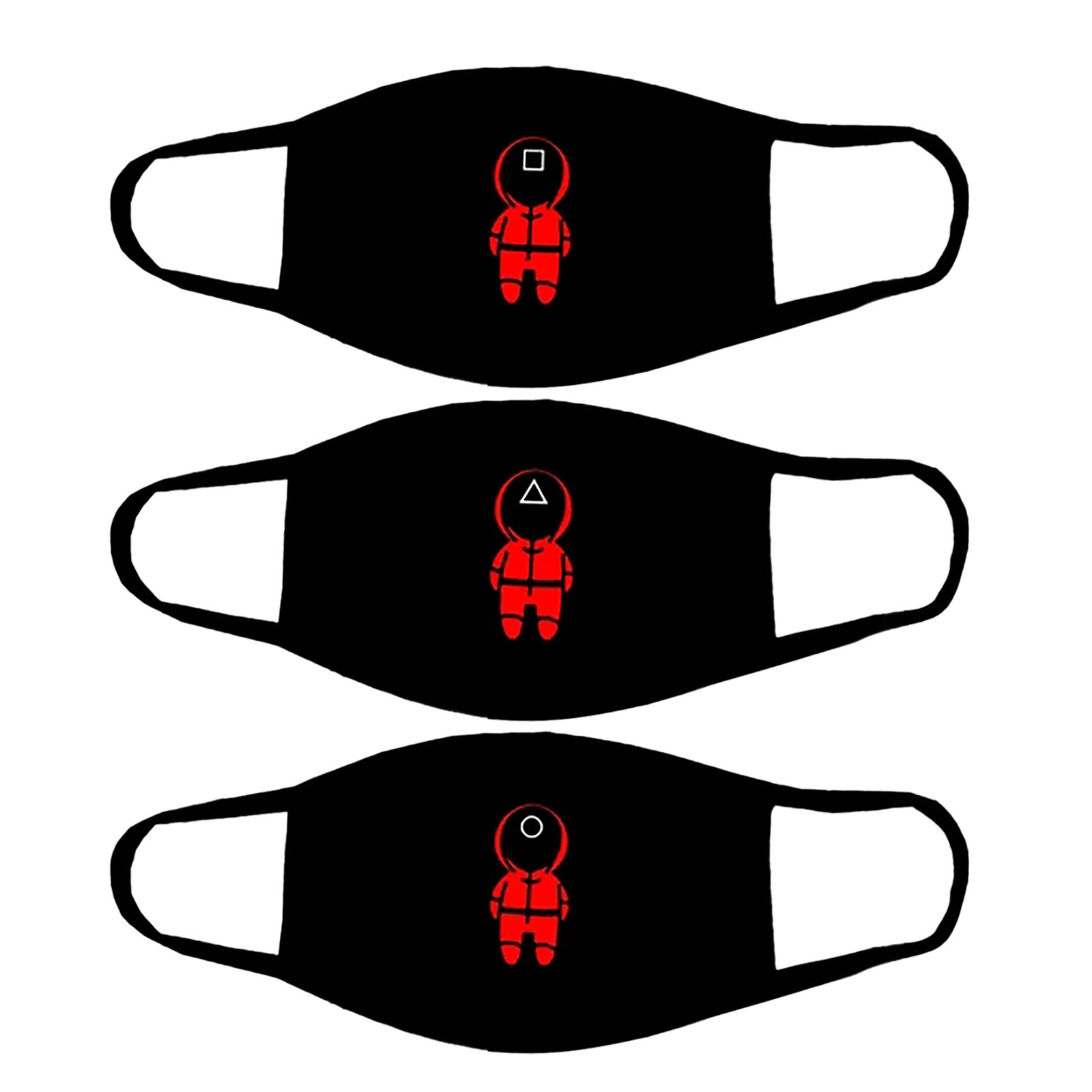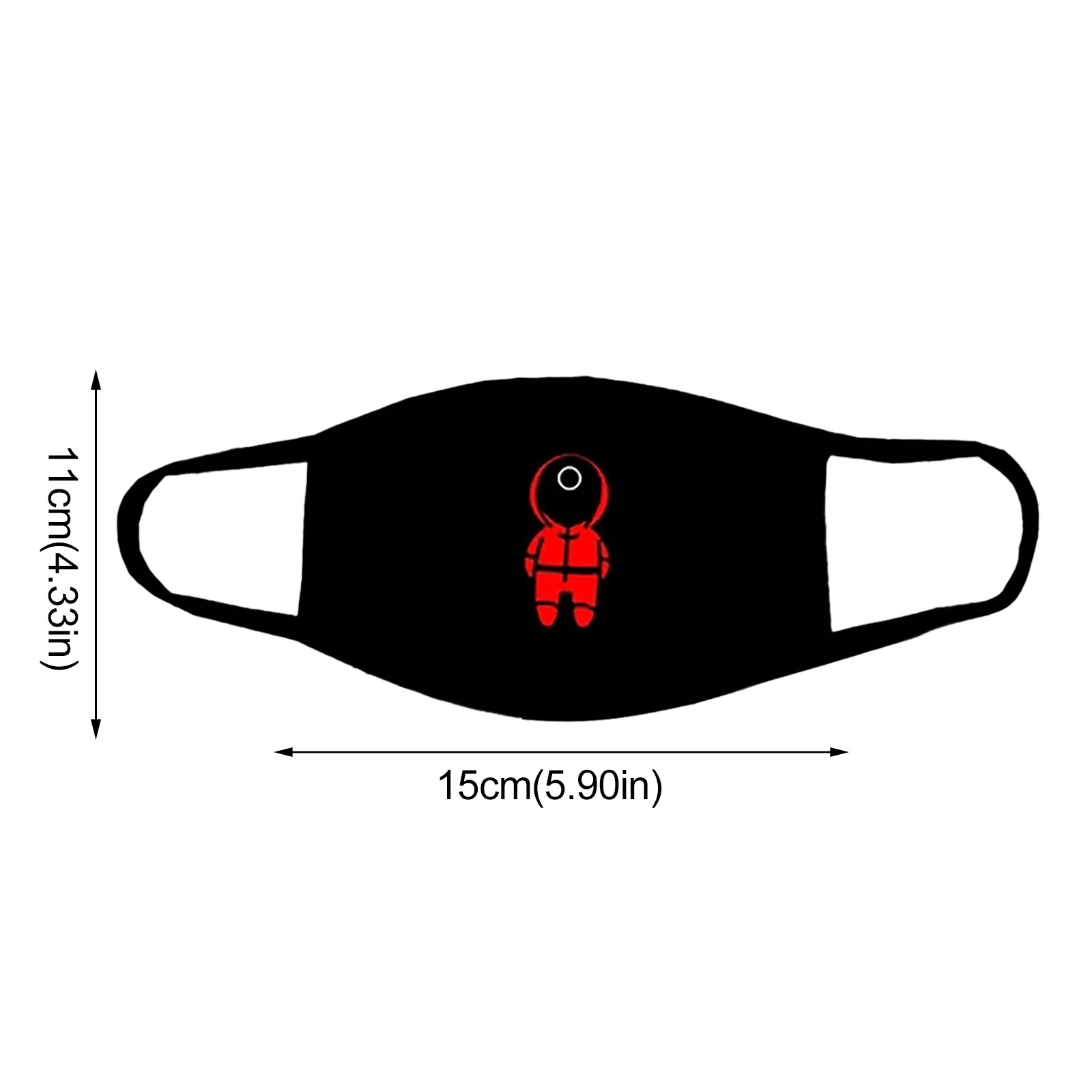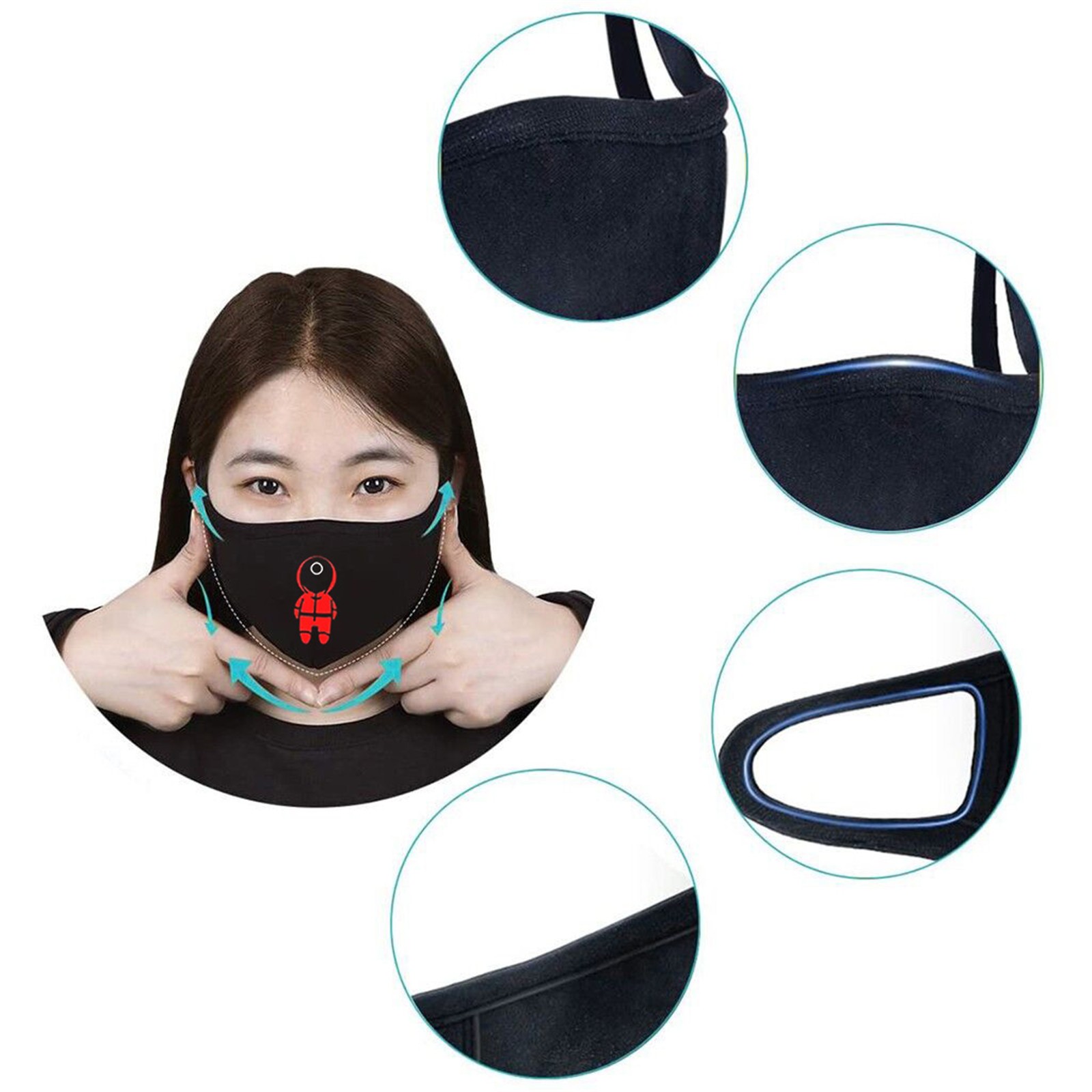 Игры кальмара3 Черная оправа для защиты лица, моющиеся маски, многоразовый чехол для лица. Защита от пыли, ветра, цветов и пыльцы и т. Д.