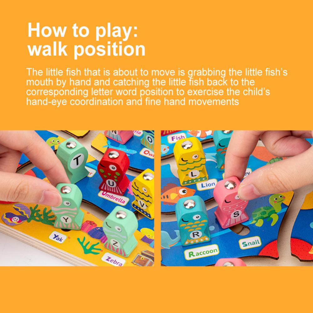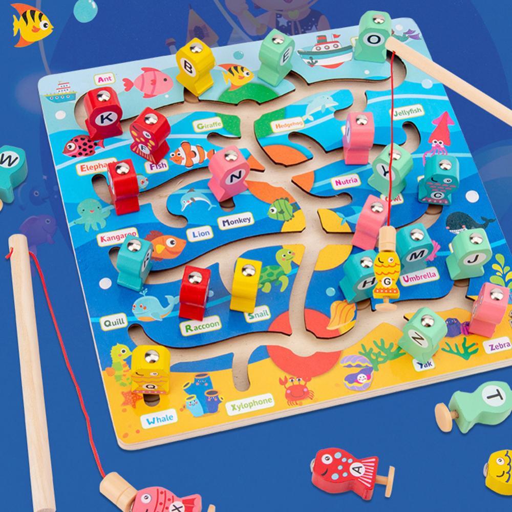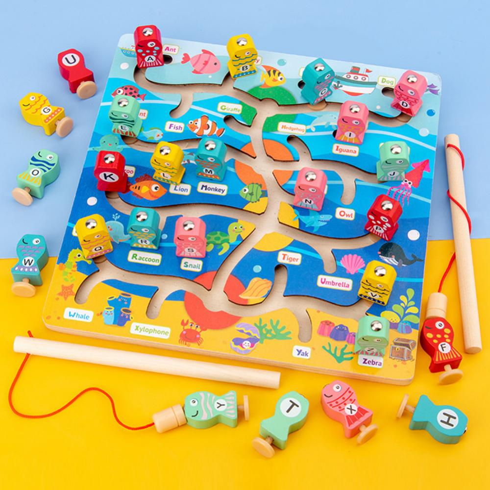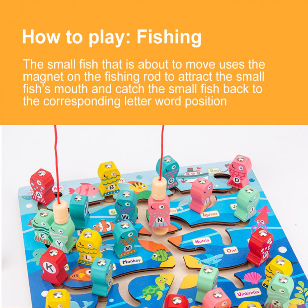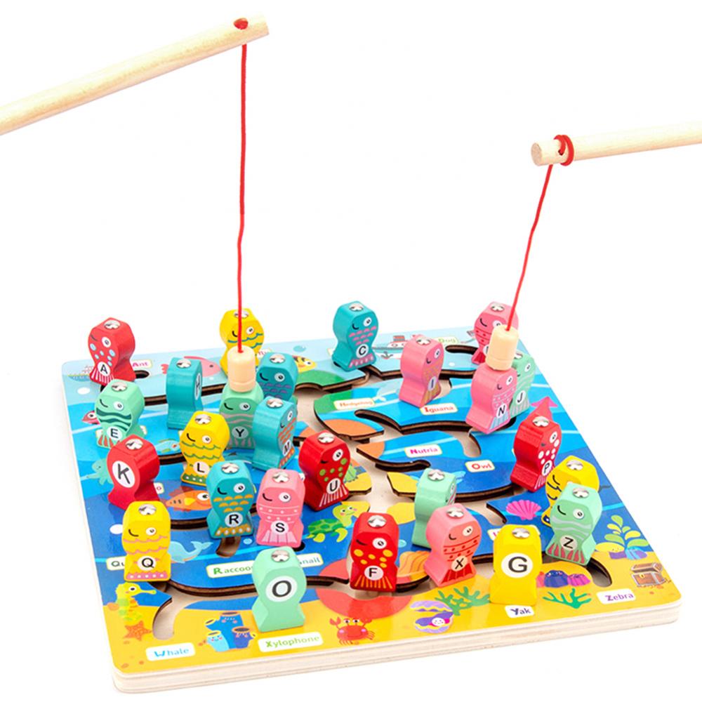 1 Набор Алфавит дошкольной доски Магнитная деревянная рыболовная игра игрушка для малышей