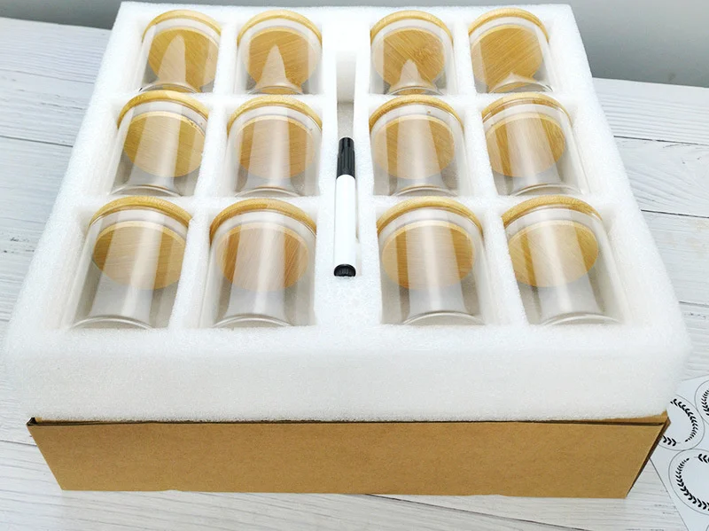 12pcs Set Glass Jars with Bamboo Wooden Airtight Lids and Labels Food Storage Containers DIY Candle Aromatherapy Home Decoration