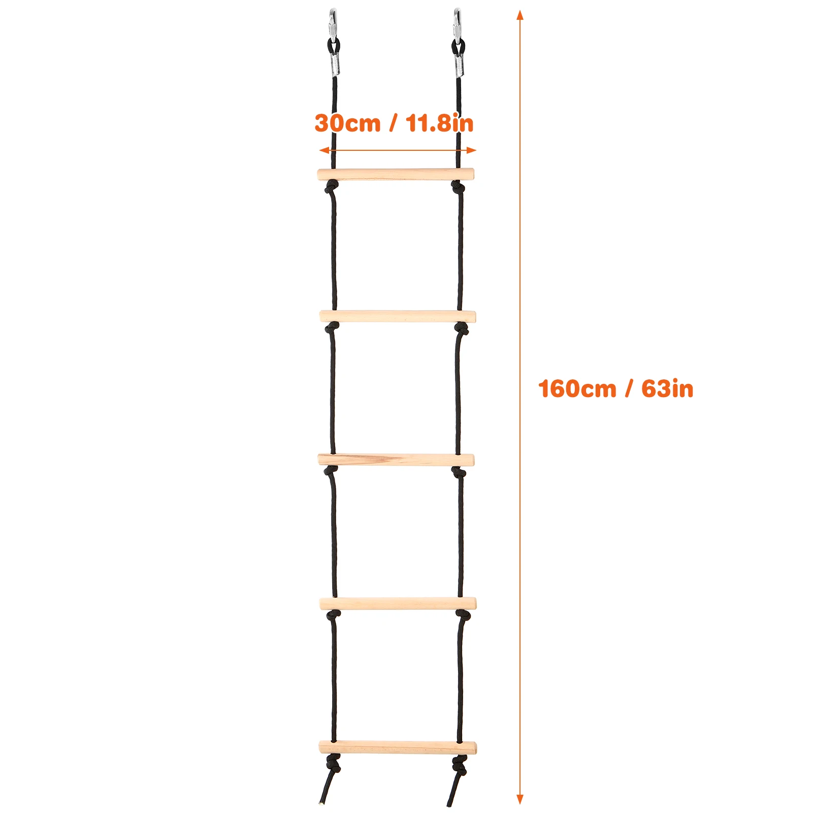 Лестница для скалолазания состоит из деревянных Рун, полиэфирные канаты и стальных карабинов, чтобы дать вашим детям много удовольствия и тренировать их координацию.