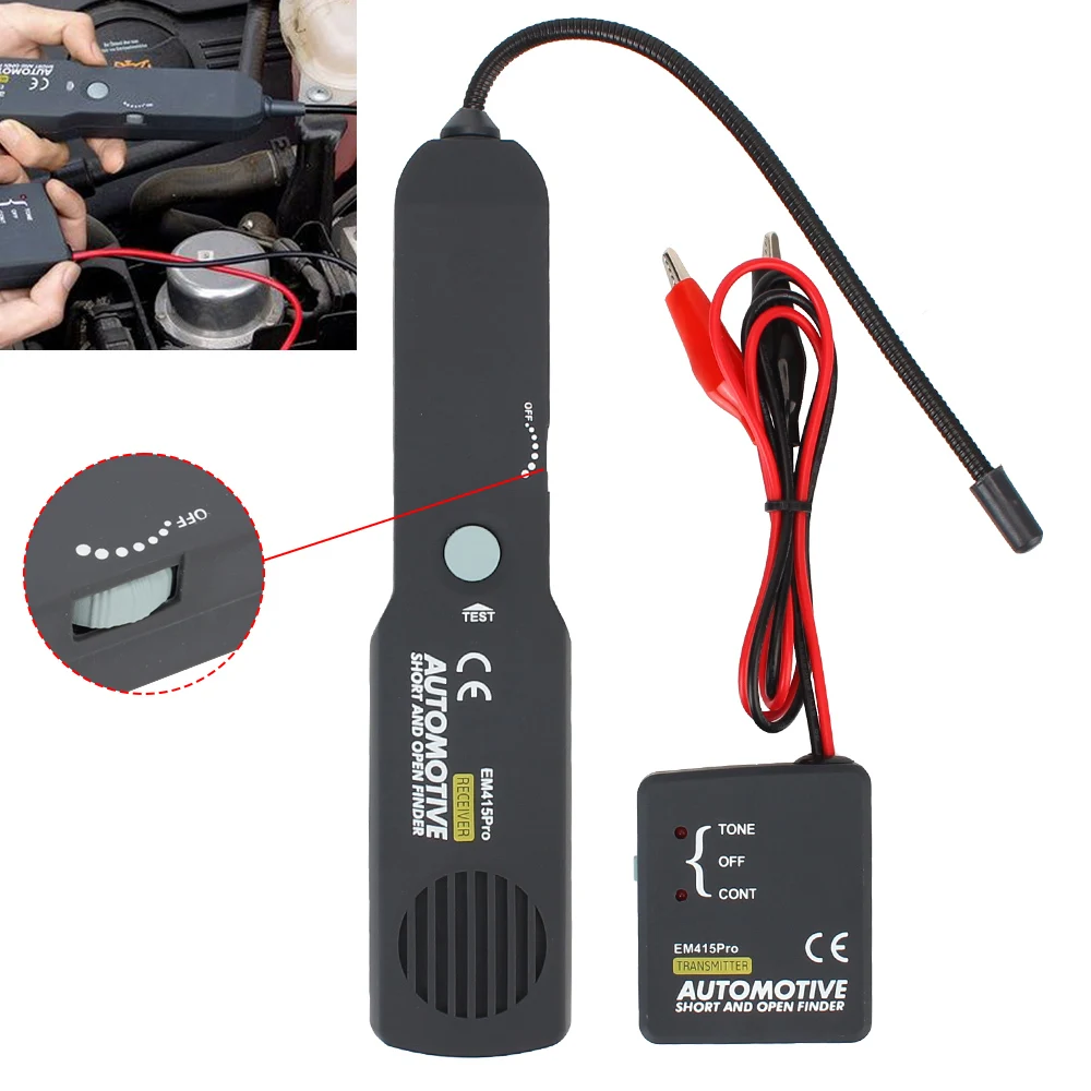Простота в использовании: Просто подключите передатчик в серии с цепи или провода под тестом, (i. Е.: в месте выдувного предохранителя, через соединитель, в серии с открытым проводом, светильник с гнездом лампы и т. д.), И сканирование цепи/провода с помощью гибкого зонда для отслеживания неисправности.