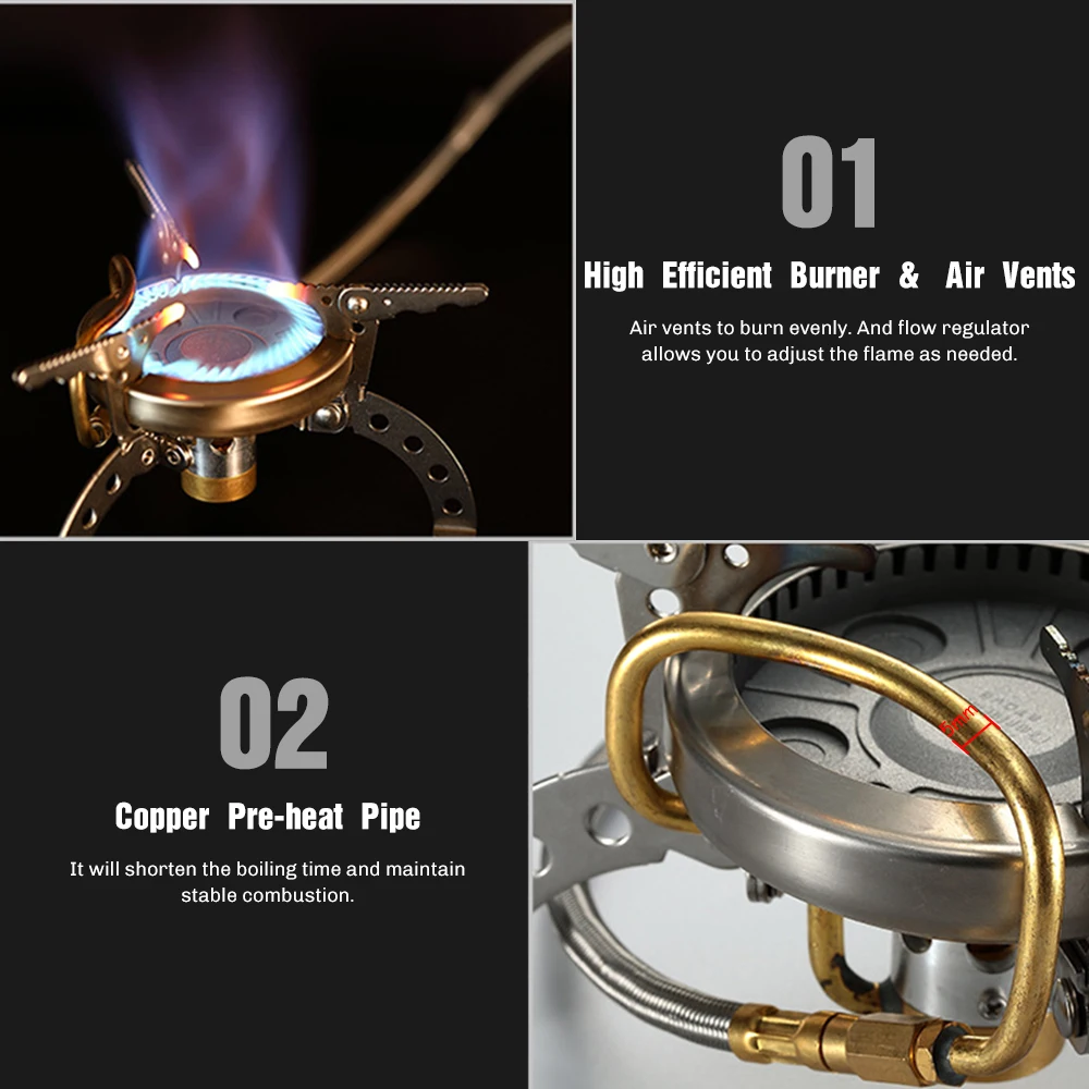 Труба предварительного нагрева, вентиляционные отверстия и горелка из алюминиевого сплава, обеспечивают стабильное горение и повышают эффективность горения.