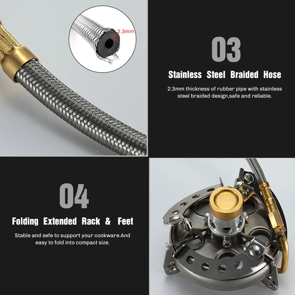 Легко поместите свой газовый бак, перевернутый для использования, подключив базу безопасности, что обеспечивает стабильную выходную мощность газа.