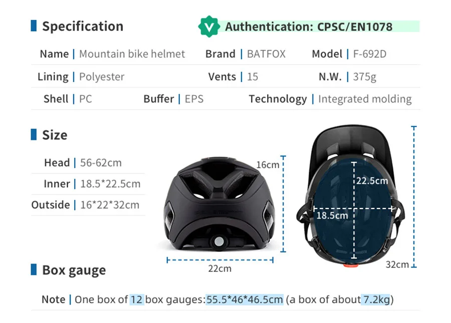 BATFOX ультра-светильник, шлем для велоспорта, шлем для велосипеда, с светильник, интегрированный в форму, Горный Дорожный велосипедный шлем, безопасные мужские и женские шлемы
