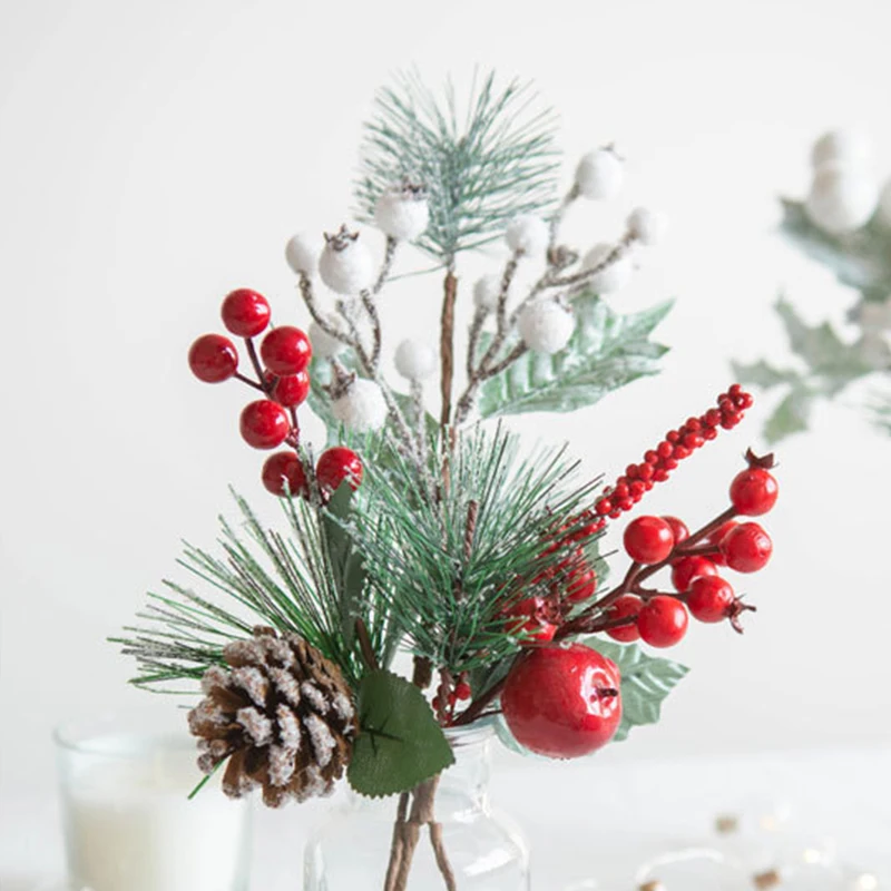 Рождественский Декор, искусственный сосновый конус, искусственные цветы, Рождественская елка, украшения, веточки, Ягодный цветок, голова, сделай сам, вечерние украшения для дома
