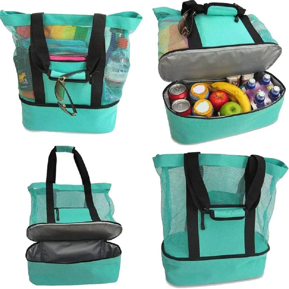 1 шт. Большая вместительная Женская сетчатая прозрачная сумка с двойным слоем для сохранения тепла большие пляжные сумки для пикника