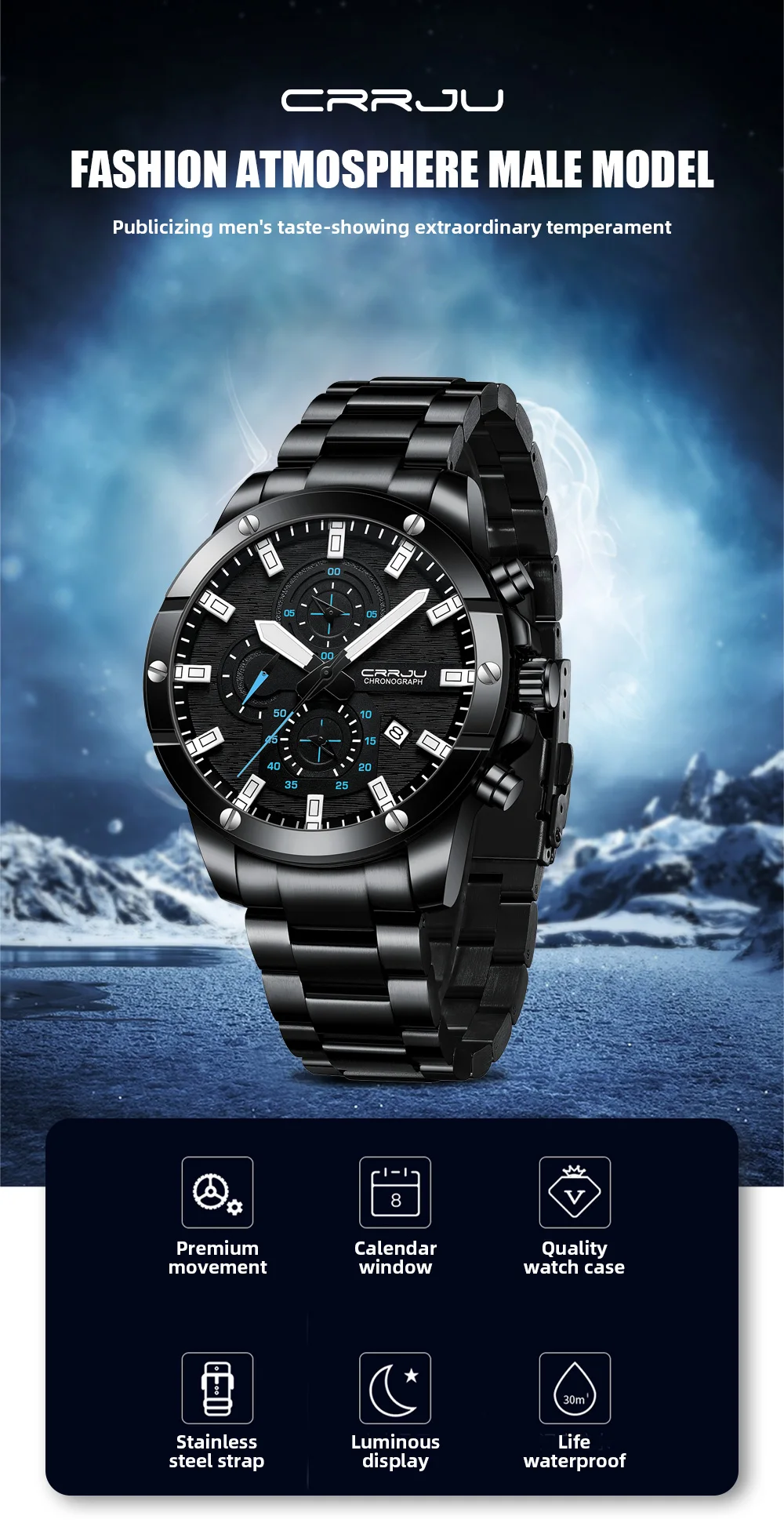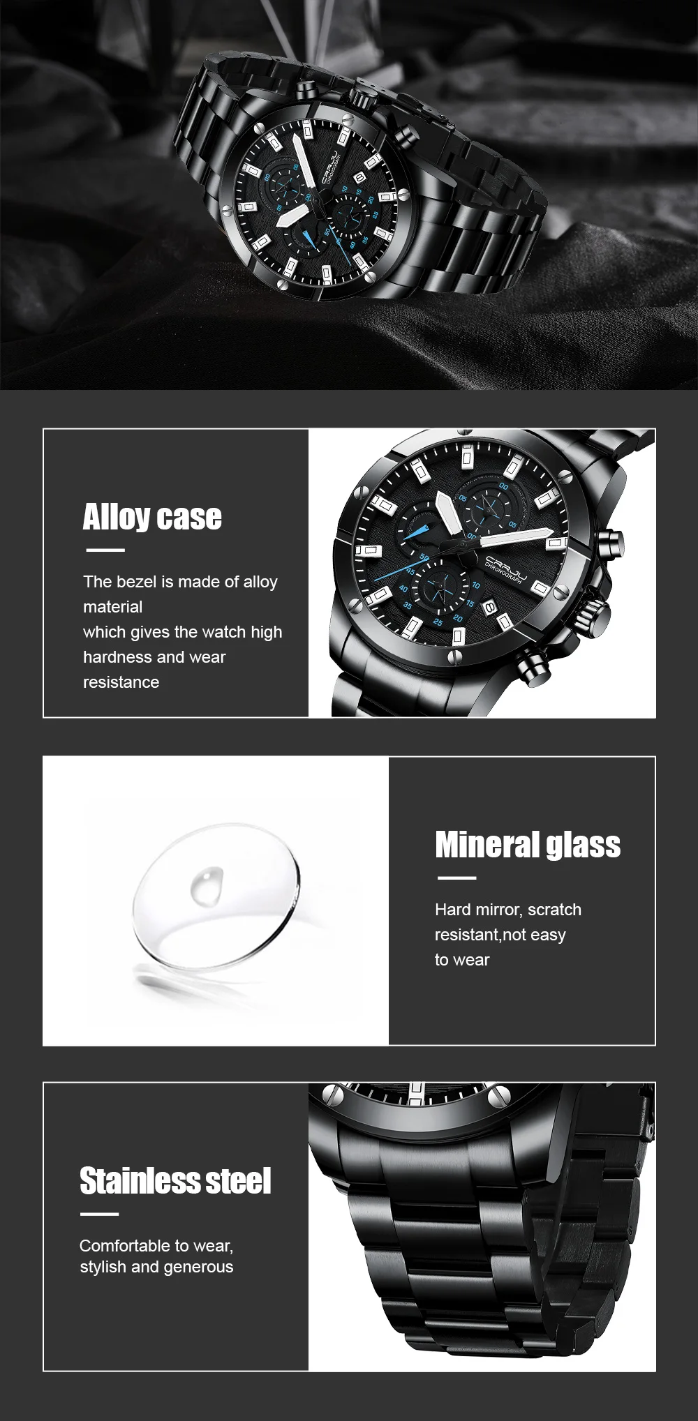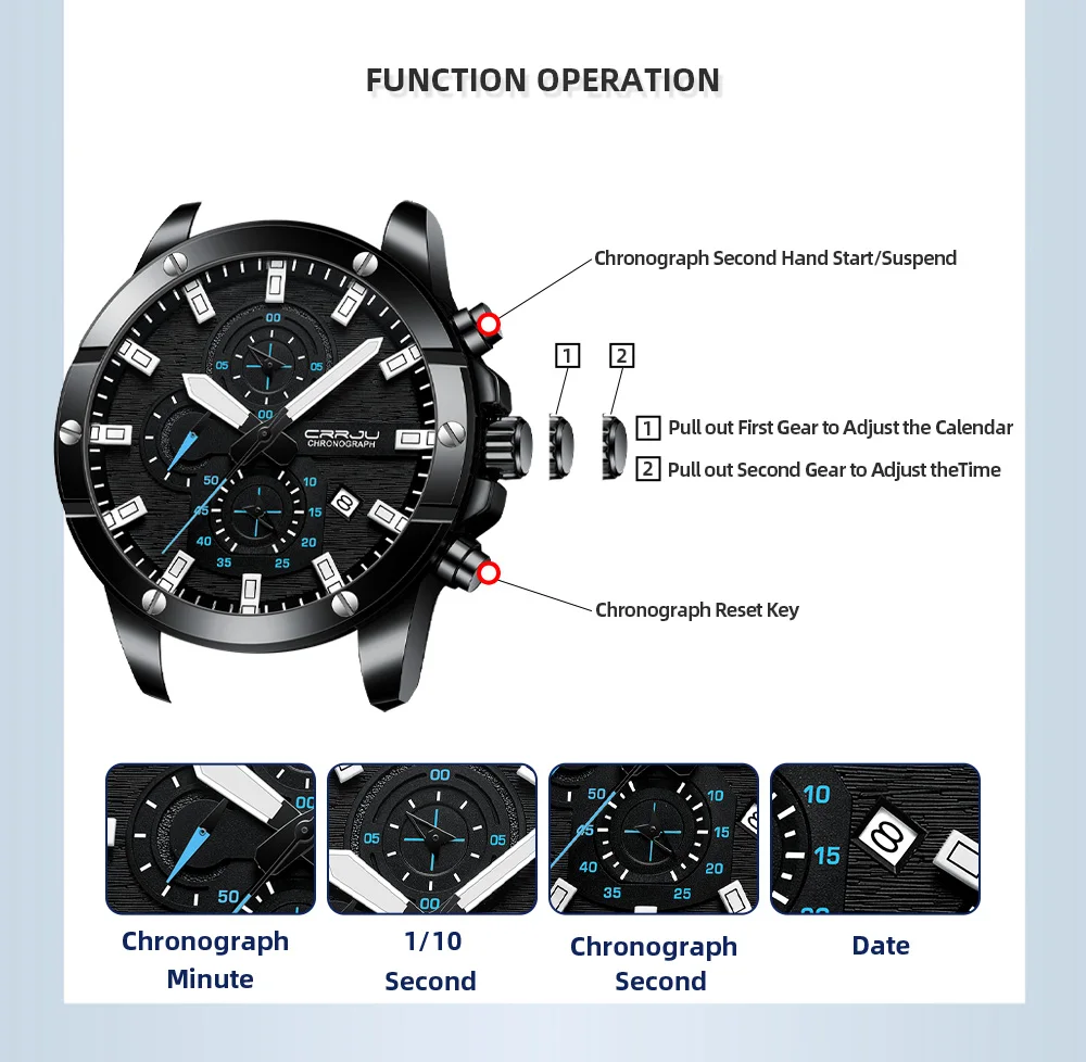 ⌚Мужские часы идеальный подарок: Эти универсальные часы сочетаются с любым случаем, будь то формальный или Повседневный. Носите эти часы на ходу, от бизнеса, отдыха до помещений и активного отдыха или для ежедневного использования. Наручные часы CRRJU-идеальный подарок для вас и ваших любимых.