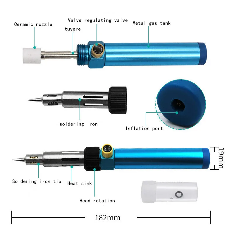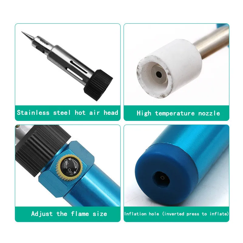 Клапан паяльника регулирует Размер клапана для контроля температуры наконечника паяльника. При регулировке температуры, вы также можете определить температуру путем наблюдения за яркостью открытия наконечника паяльника. Когда клапан закрыт, есть определенная задержка, и пламя не погаснет немедленно