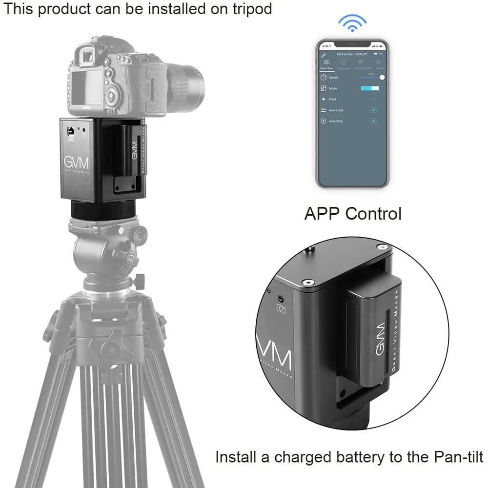 WX-1D с моторизованной головкой-это простое в использовании устройство, которое может управляться через мобильный телефон APP для добавления 360 ° движения панорамирования к вашим видео в режиме реального времени и времени. Он может питаться от литиевой батареи для легкой наружной съемки. Корпус изготовлен из алюминиевого сплава, светильник и портативный. Он может быть установлен на штатив или слайдер для удовлетворения различных потребностей съемки