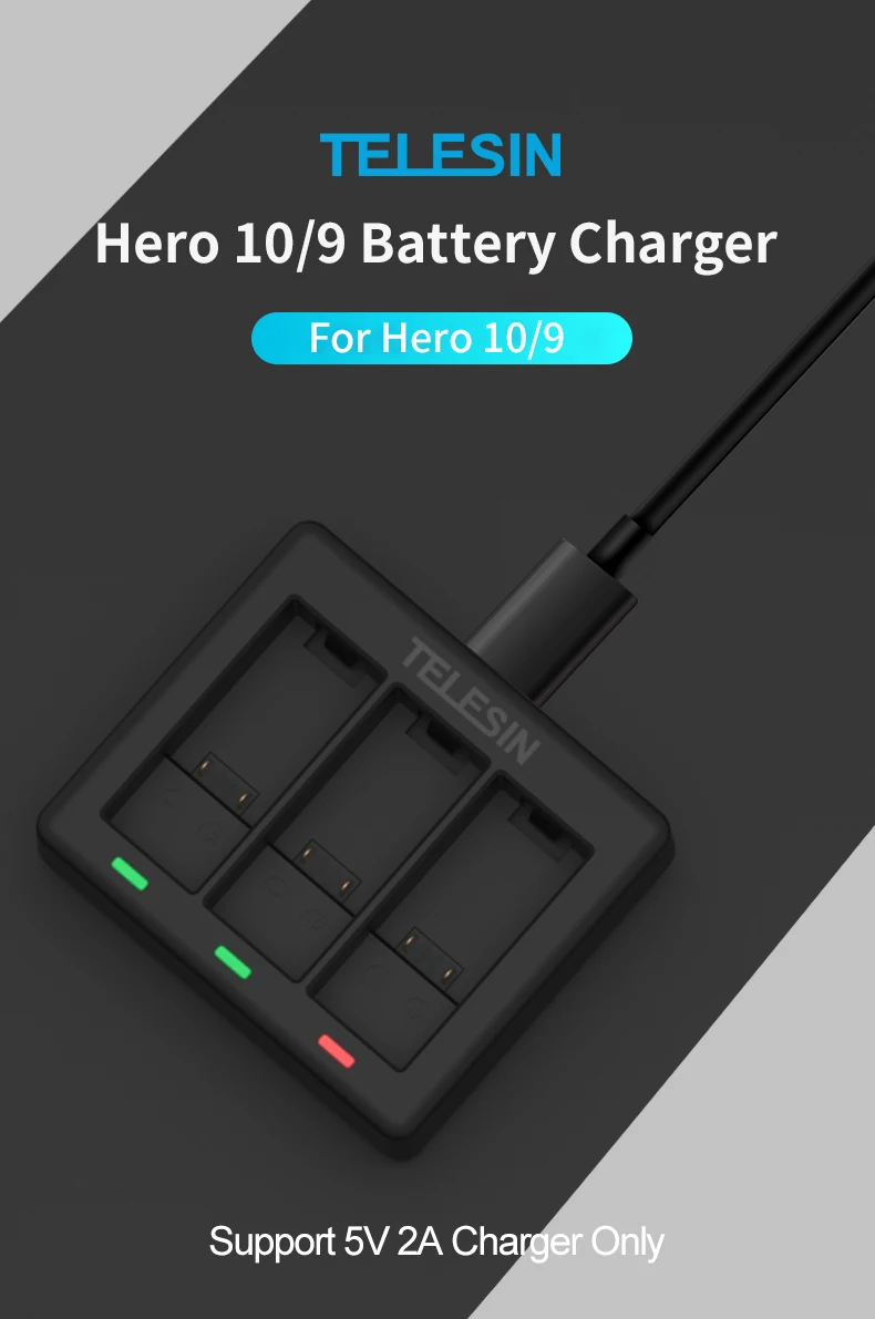 TELESIN 3 способа зарядное устройство с LED светильник зарядная коробка для GoPro Hero 9 10 черный аксессуары для экшн-камеры
