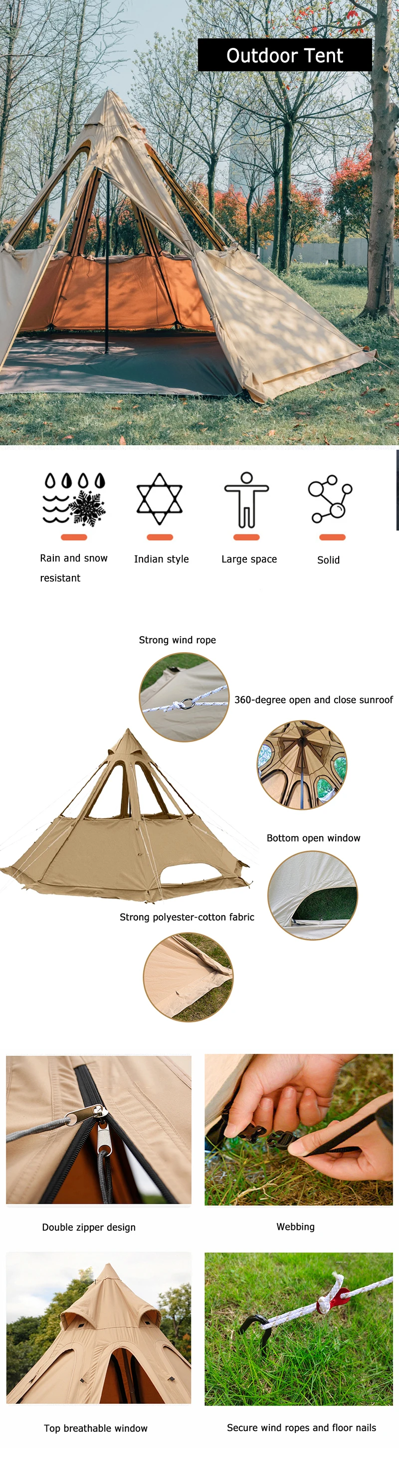 Продукция включает в себя: палатку, наземный гвоздь, ветряную веревку, внешний мешок, алюминиевый стержень,