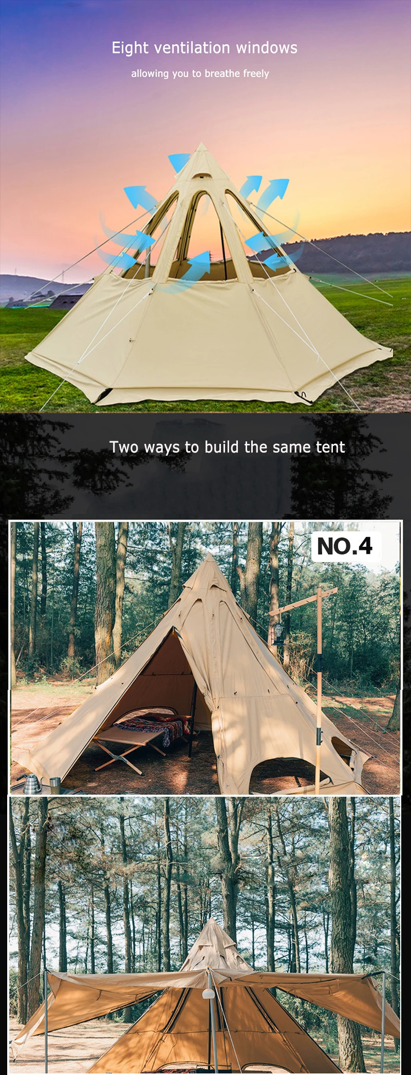 Открытый большой палатка для кемпинга 3-4 человек индийский хлопок Пирамида палатка