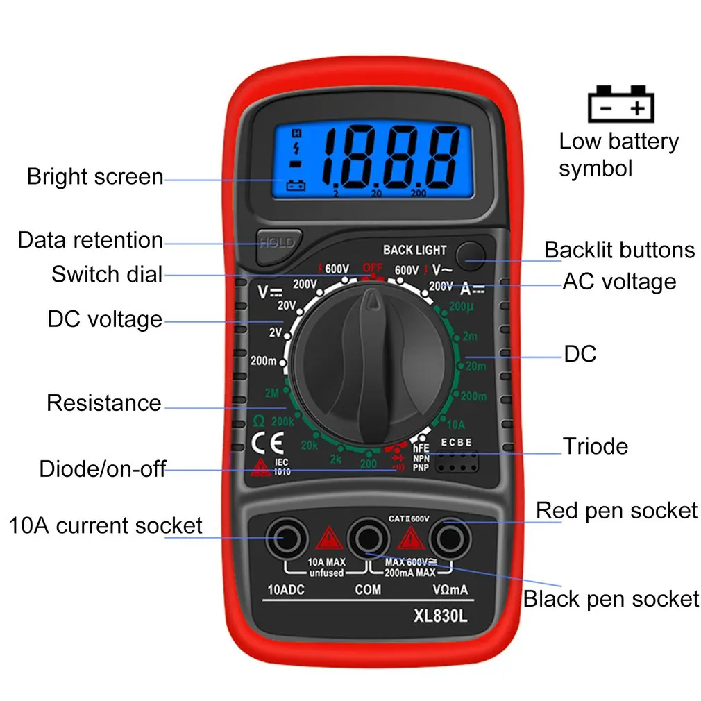 5. Экран с подсветкой. Яркий экран цифровой дисплей четкий, с символом напряжения.