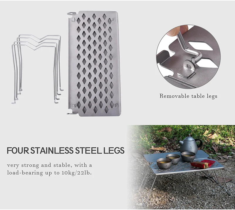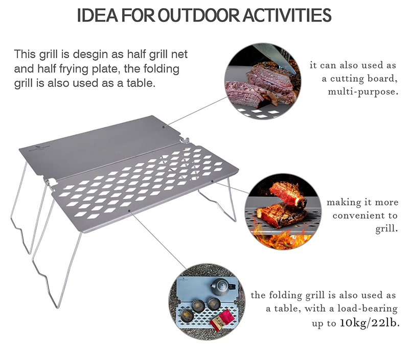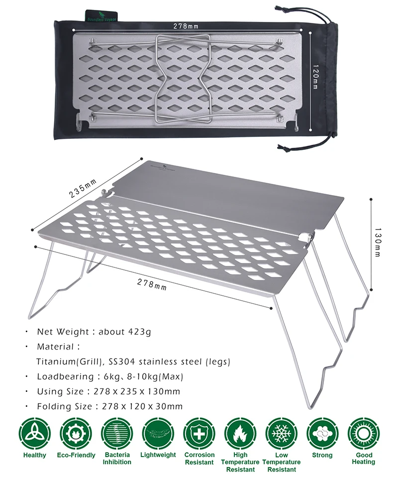 Материал:99.8% Титан (гриль), нержавеющая сталь SS304 (ножки)
