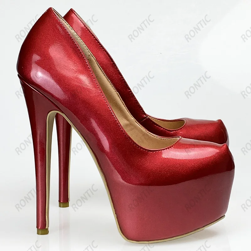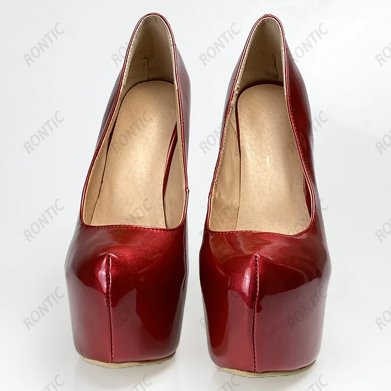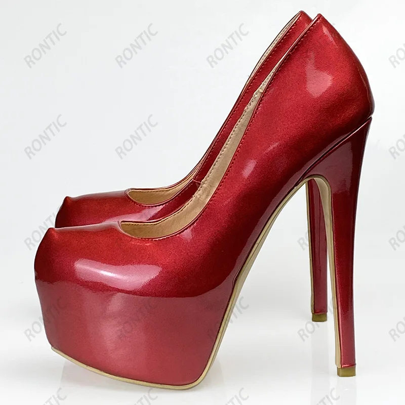 Rontic/Новое поступление; Женские туфли-лодочки на платформе; Лакированная кожа; Пикантные туфли на шпильке с круглым носком; Великолепные красные вечерние туфли; Американские размеры 5-20