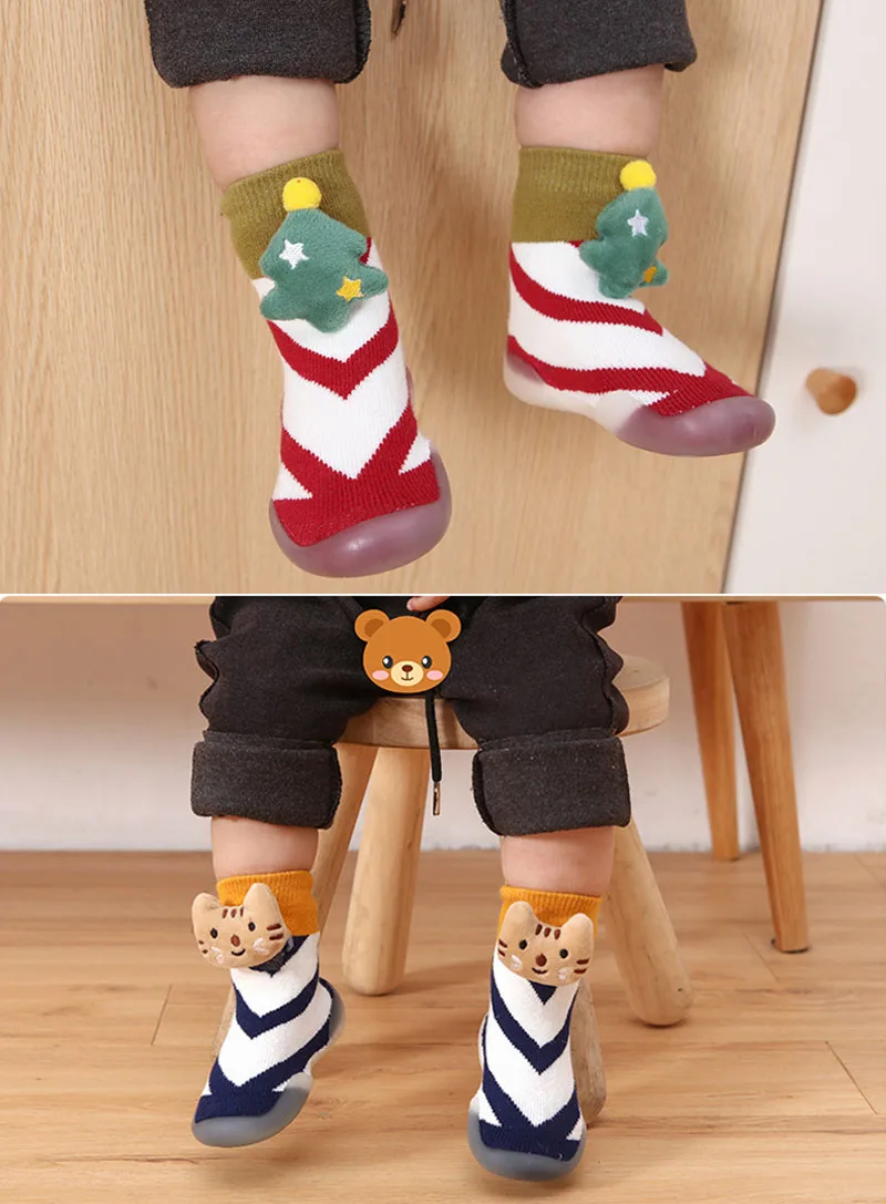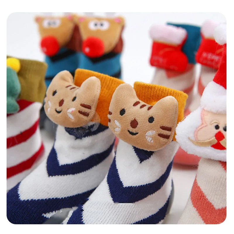 ♥Детская обувь для первого шага; Забавные вечерние туфли-тапочки с рождественским оленем Санта-Клаусом для костюмированной вечеринки