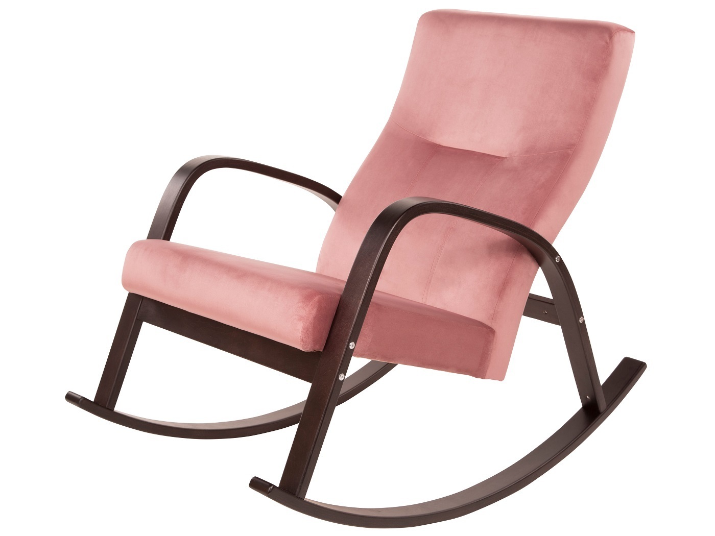 Кресло-качалка «Ирса» с тканевой обивкой цвета Пудровый и каркасом цвета Вишня.