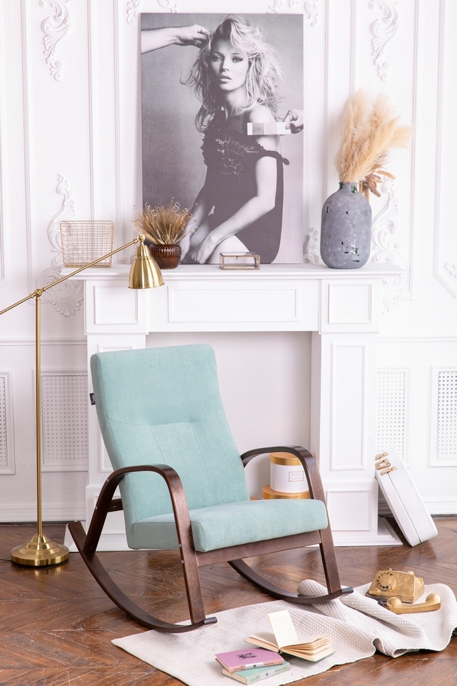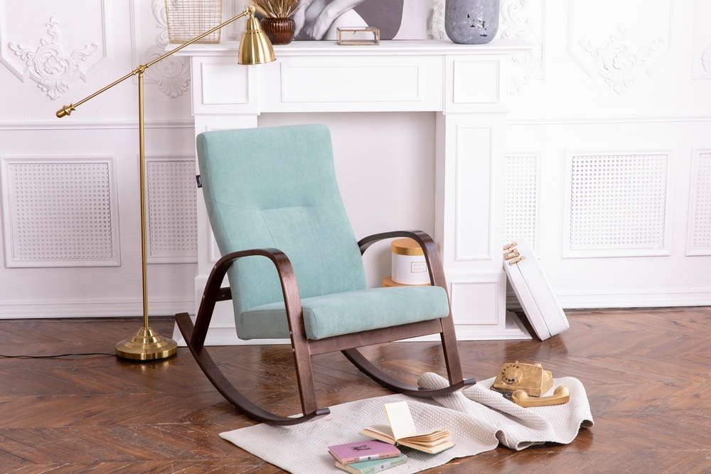 Кресло-качалка Мебелик Ирса ткань минт, каркас вишня