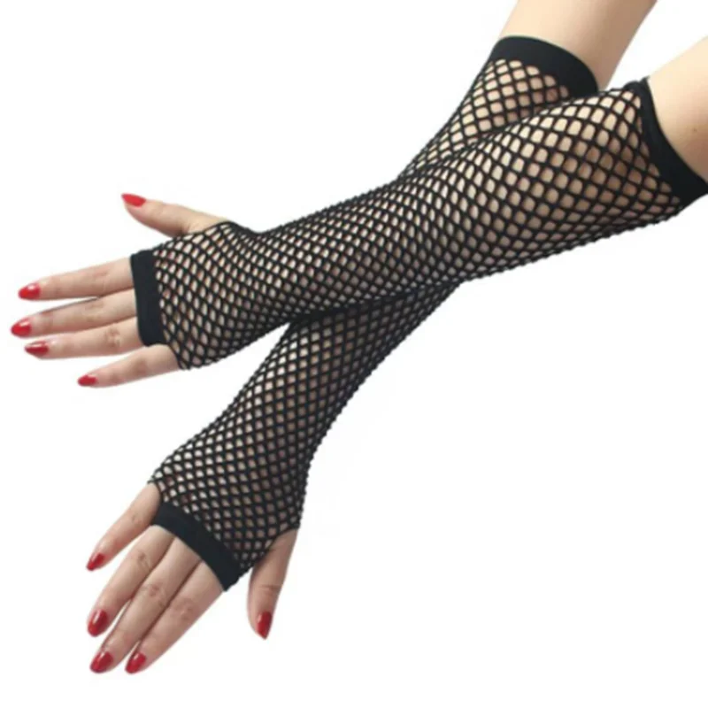 Длинные перчатки без пальцев с рыбной сеткой