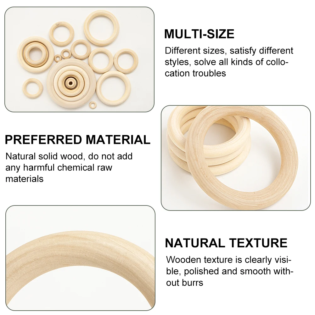 Деревянное кольцо является одним из многофункциональных замечательных видов искусства и ремесел. Гладкая поверхность не имеет больших узлов или шероховатых пятен, поэтому не будет колоть руки, обеспечивая Вам комфортное прикосновение и выглядеть красиво. Отлично подходит для всех видов ремесленных проектов.