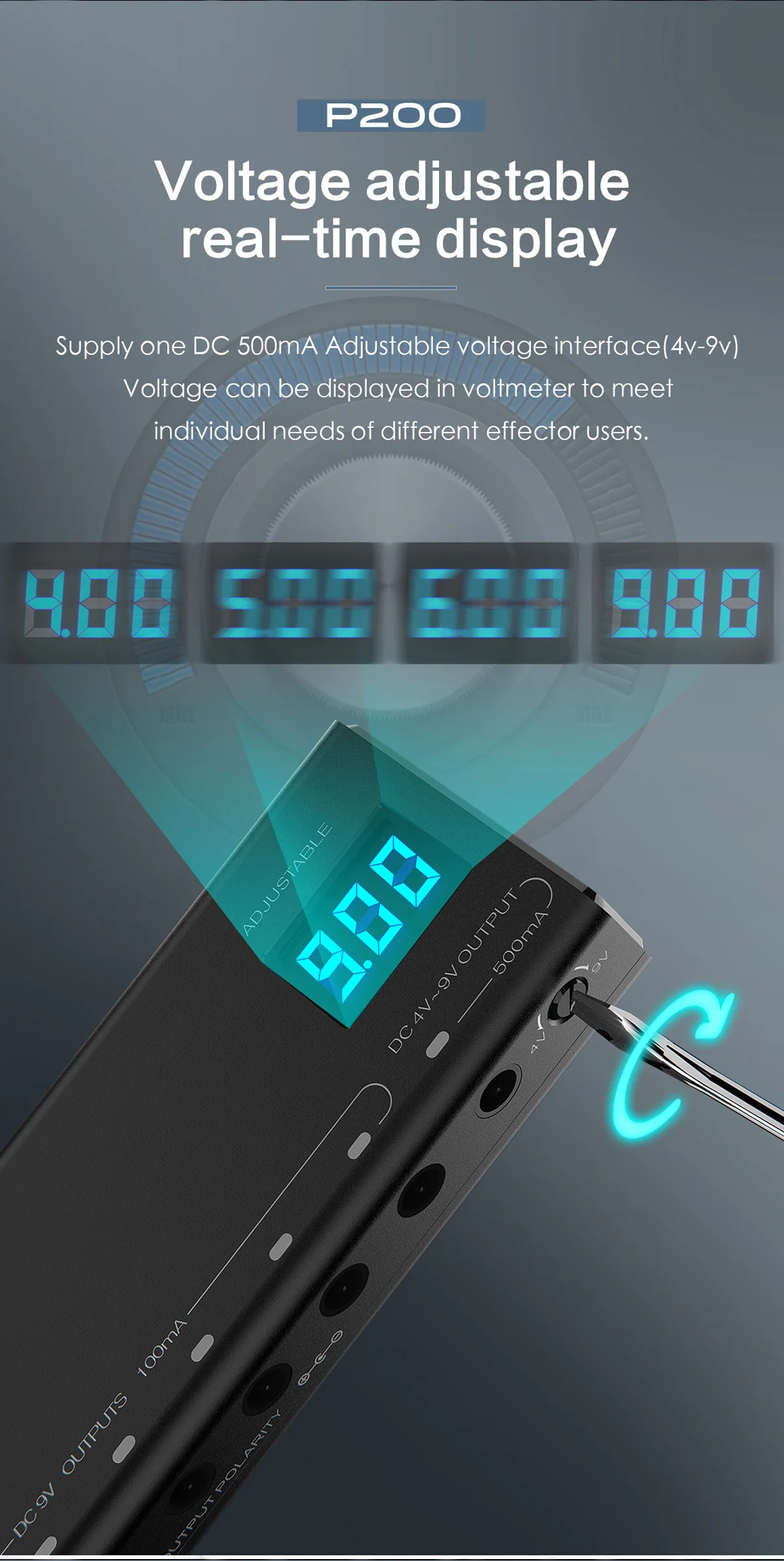 8 изолированных выхода постоянного тока: 1st в 7th Выход DC 9V 100mA, 8th регулируемый выход постоянного тока 4-9v 500mA