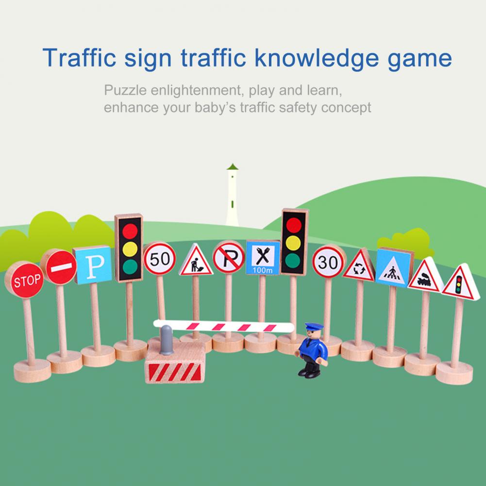 16 шт. дорожные игрушечные знаки повышают безопасность концепция тщательная работа дерево просветление дорожный знак игрушка для детей