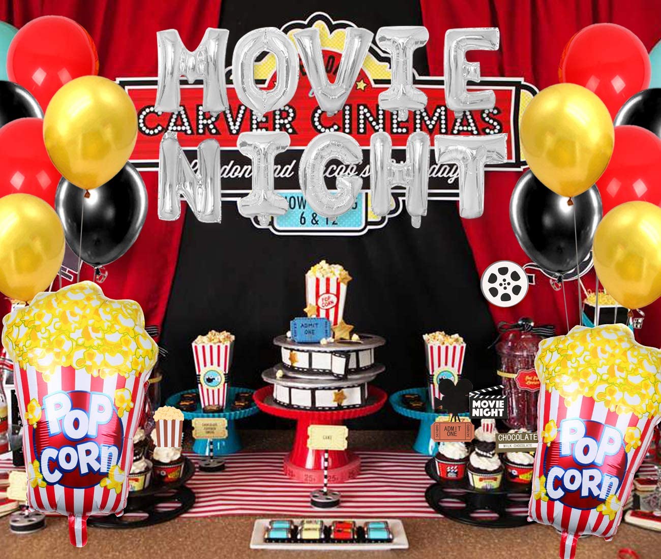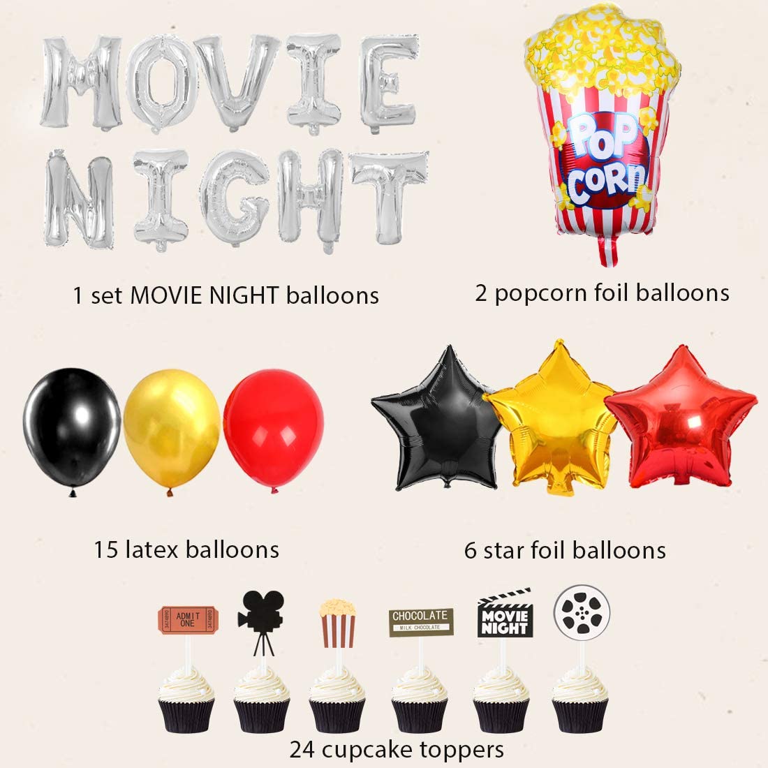 Идеальное качество: ночные воздушные шары для фильмов, воздушные шары для попкорна и воздушные шары в форме звезды изготовлены из алюминия, украшены 24 пирожными, изготовлены из прочной бумажной карты, безопасны и долговечны.