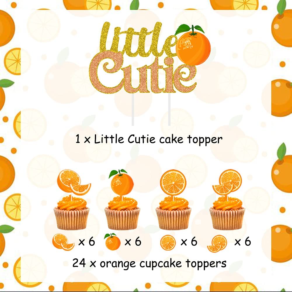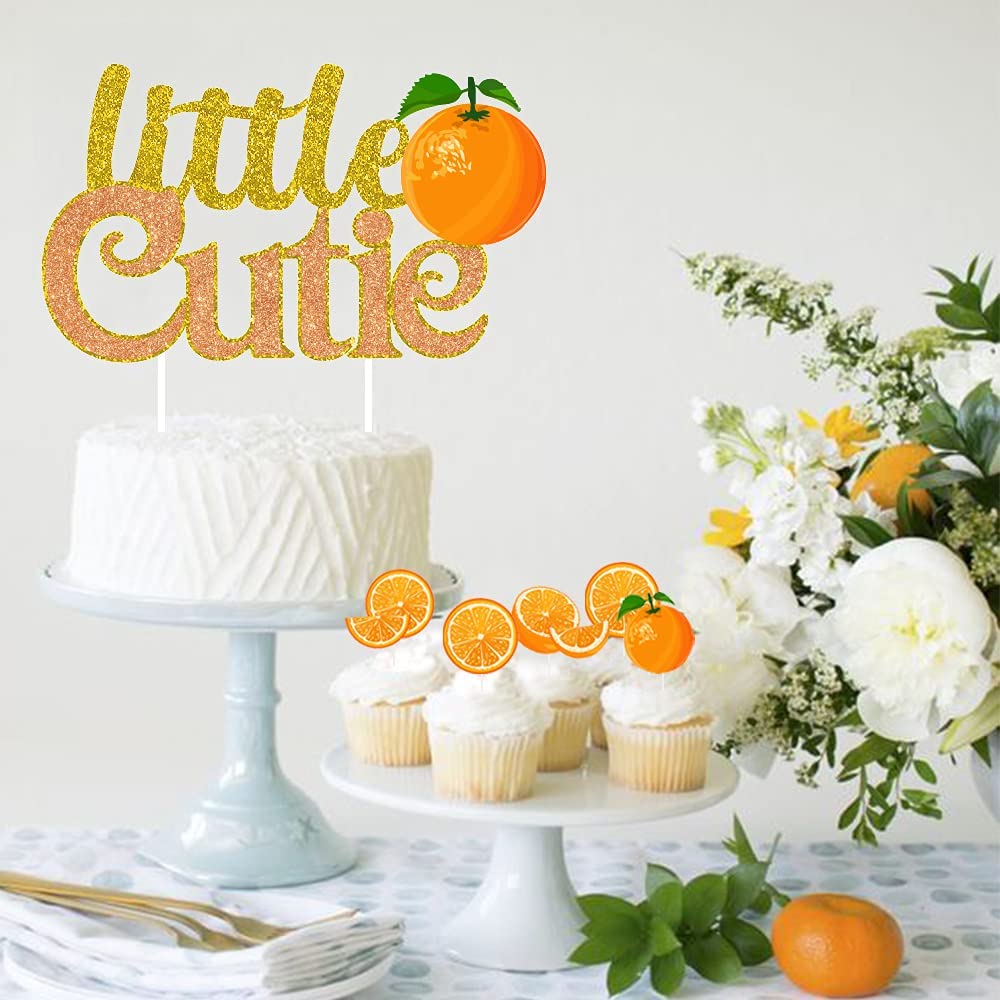 Маленькая милашка, украшение для торта с золотым блеском, маленькая милашка, топпер для торта, 24 штуки в упаковке, Мандариновые кексы для детского дня рождения, Мандариновые принадлежности для вечеринки