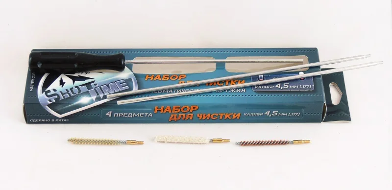 Составной металлический шомпол + 3 ерша (пуховка, спираль, щетина)