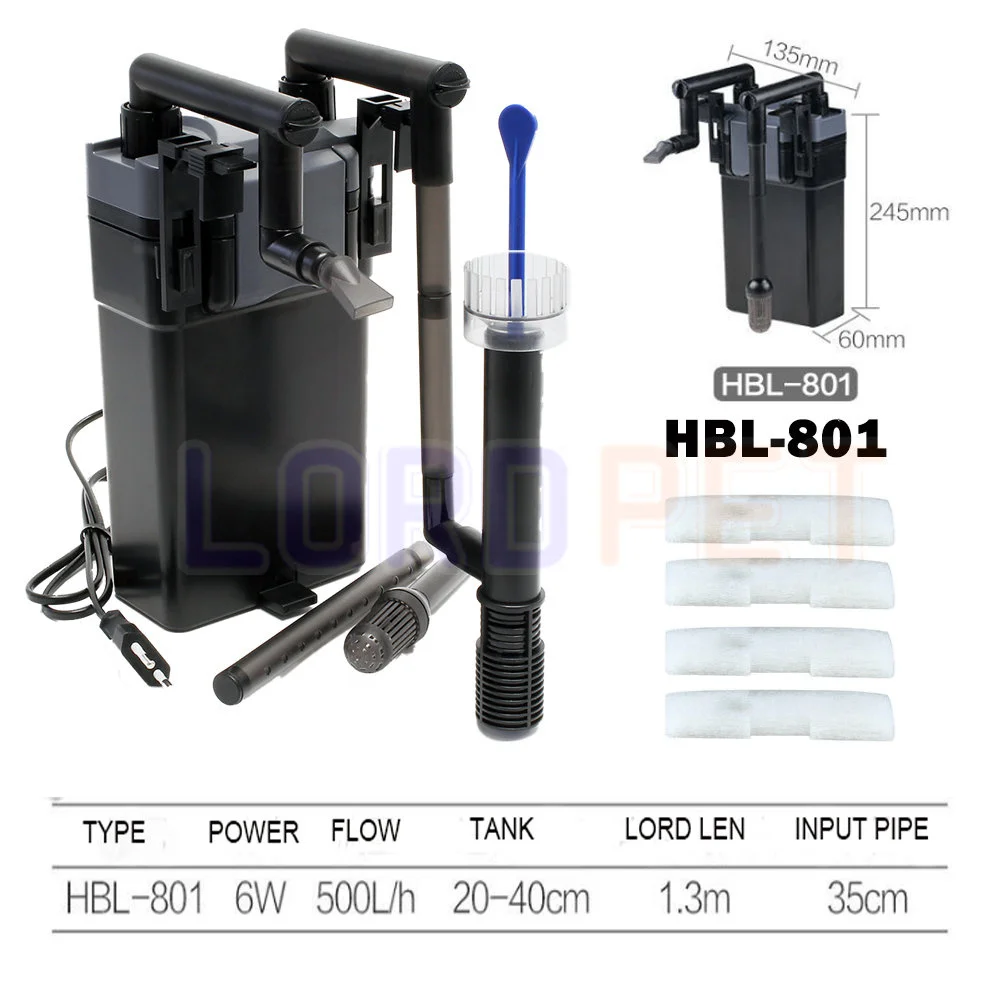 SunSun HBL-801 внешний фильтр шумовка 500l/ч до 60 литров аквариума 6 Вт многоступенчатый фильтр регуляцией расхода