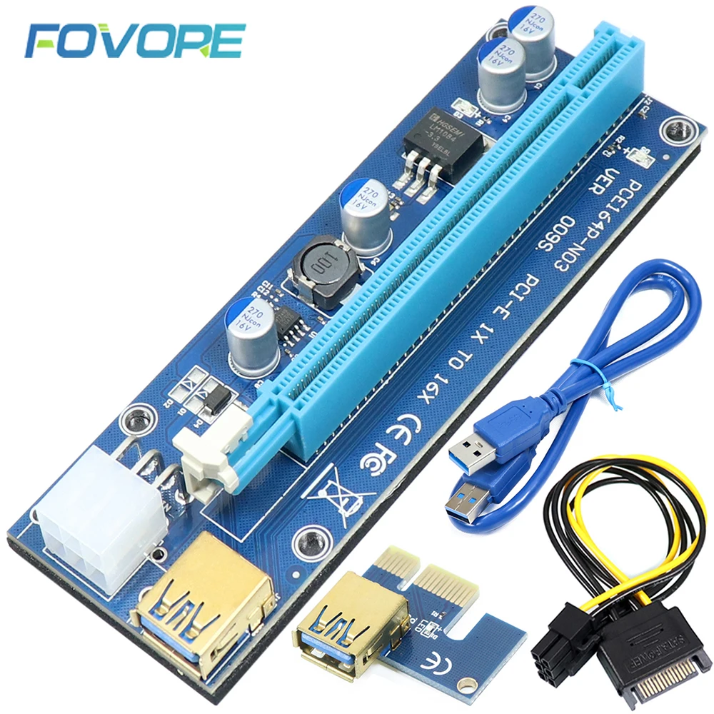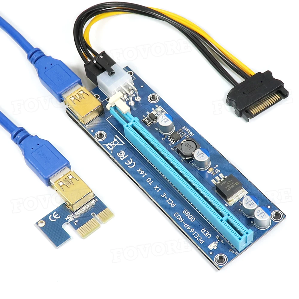 Golden VER009S PCIE Riser Card 009S PCI-E 1X к 16X расширитель 60 см USB 3,0 кабель SATA к 6Pin шнур питания для видеокарты Новый