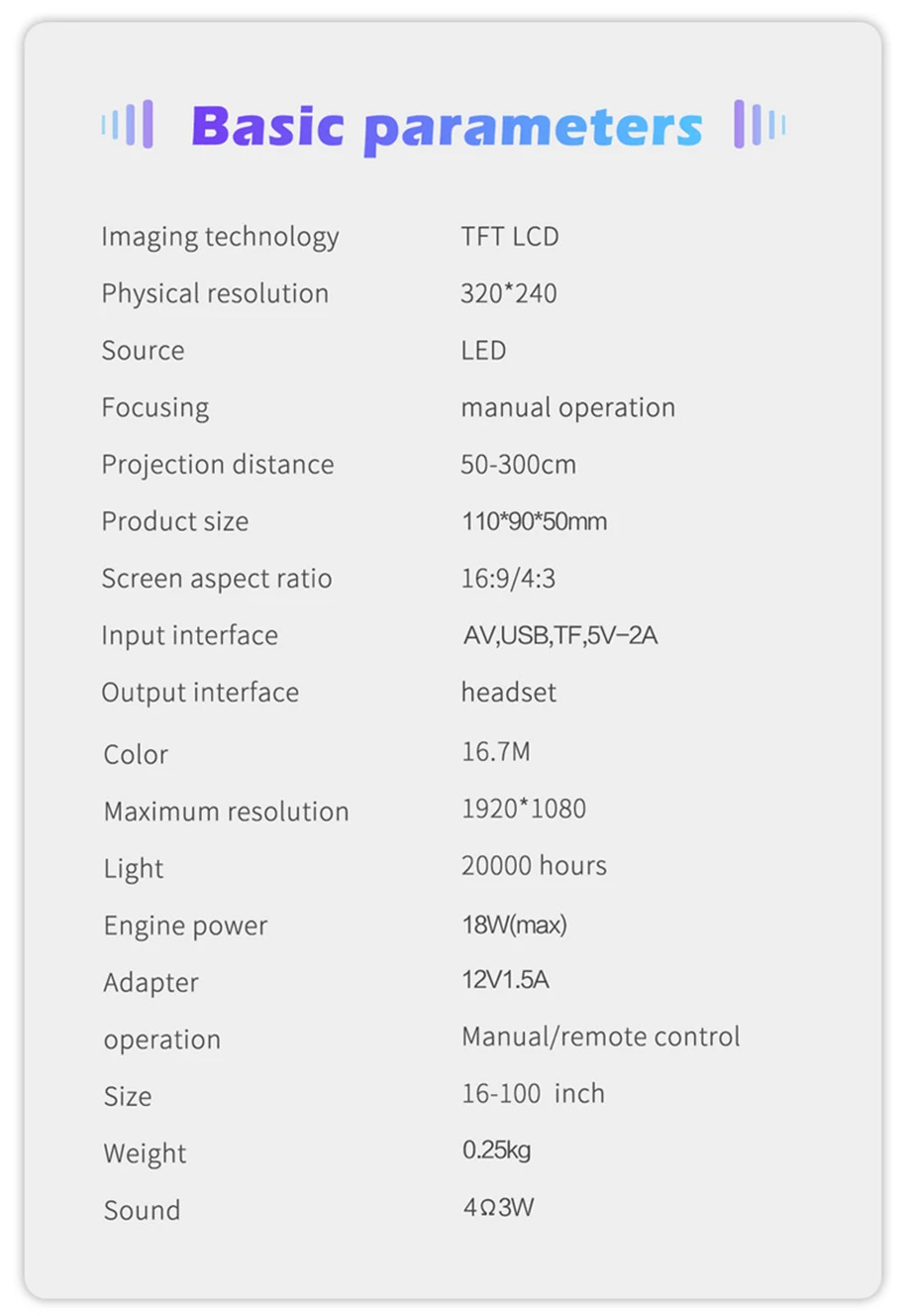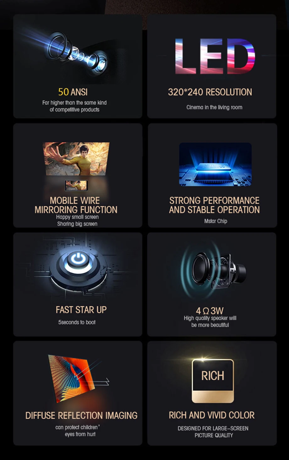 Визуальный Световой поток: ANSI 50 (LED 200 люмен