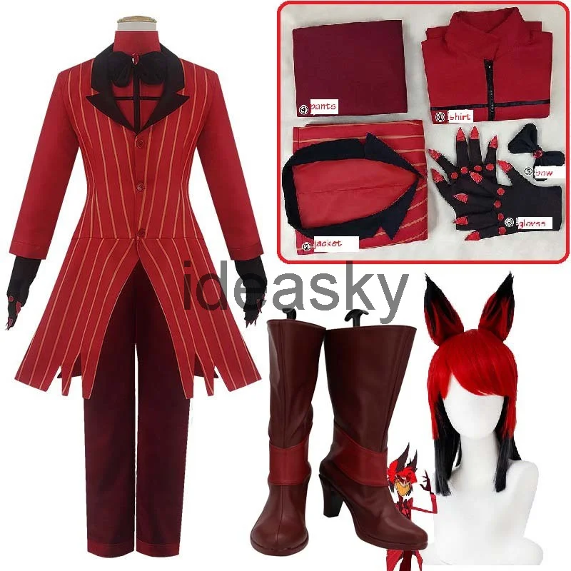 Аниме хазбин Косплей отель ALASTOR униформа косплей Мужчины Женщины Хэллоуин костюм полный комплект куртка брюки рубашка галстук перчатки парик обувь