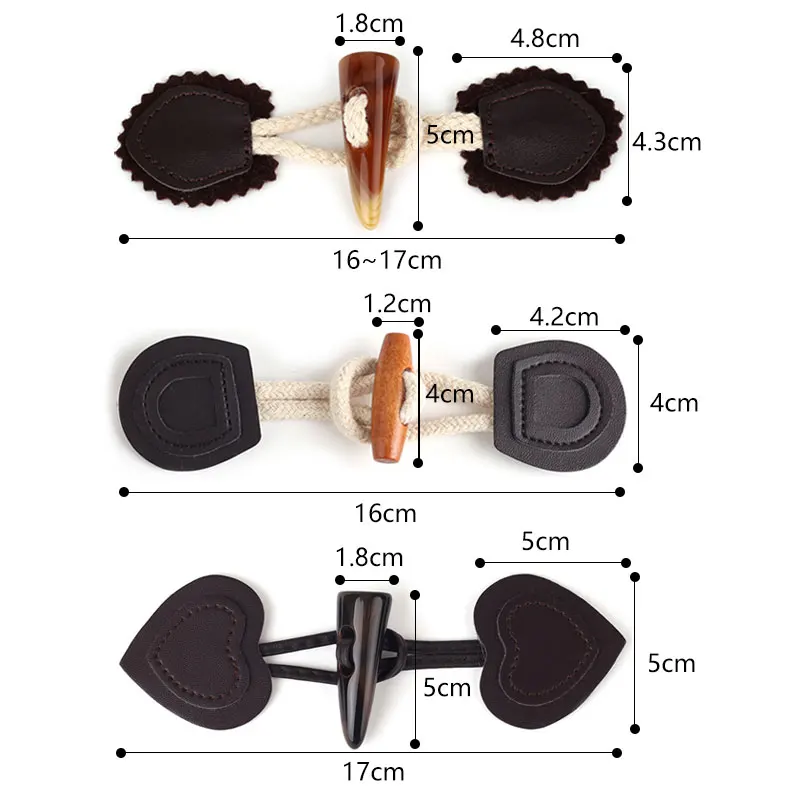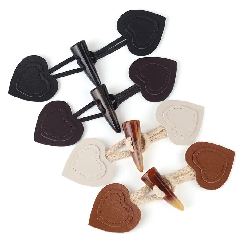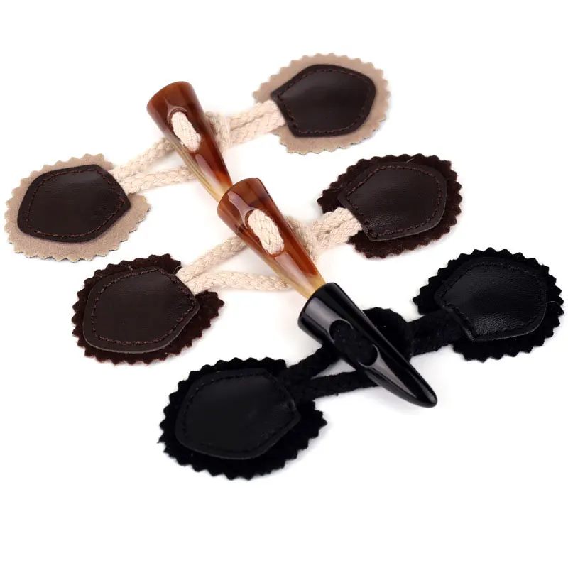 Vintage PU Leather Resin Horn Button Toggle Clasps For Coat Jacket Combined Buttons DIY Sewing Cardigan Fasteners Clasp Wholesale