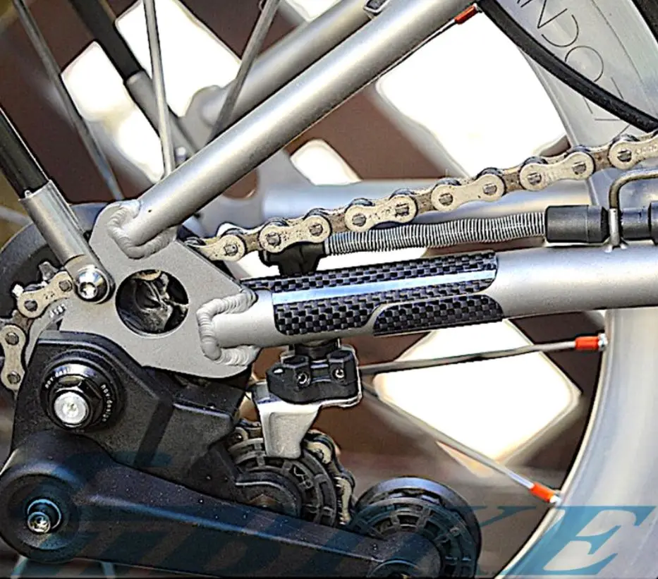 Особенности: для цепное защиты более задняя вилка рамы, с клейкой лентой 3 м. Если использовать наш крючок, он будет идеальным.