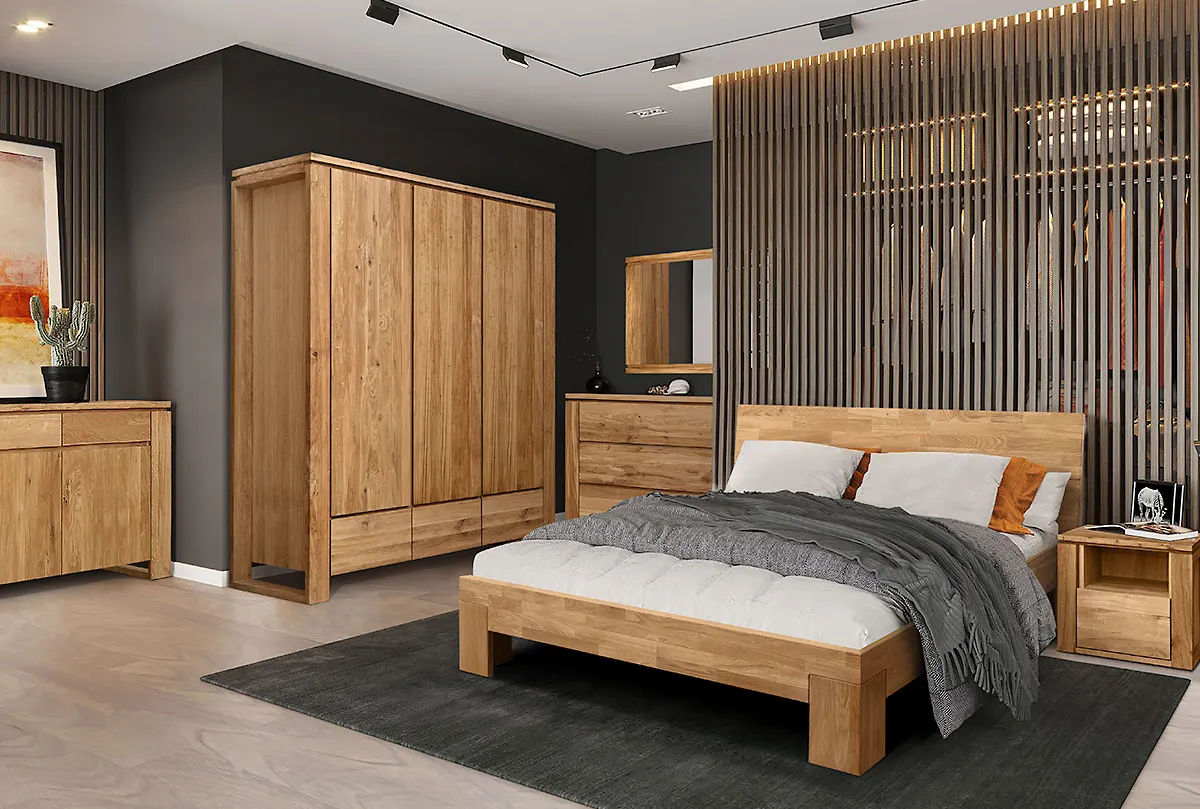 В двуспальной кровати «Берген» С 160 идеально проявились свойственные скандинавам обстоятельность и любовь к природе. Мебель из массива дуба сделана из брусков, которые специально не подбирались по рисунку. Кроме того, натуральная древесина пропитана исключительно бейц-маслом, защищающим ее от влаги, УФ-излучения и различных загрязнений. Низкое изножье позволяет подойти к кровати с трех сторон, а невысокая спинка дает возможность поставить кровать в помещении с ограниченной высотой потолков, к примеру, в мансарде. Чистота линий и материалов должна поддерживаться чистотой в помещении: этого легко достичь, благодаря высоте ножек кровати, которая позволяет без трудностей проводить влажную уборку.