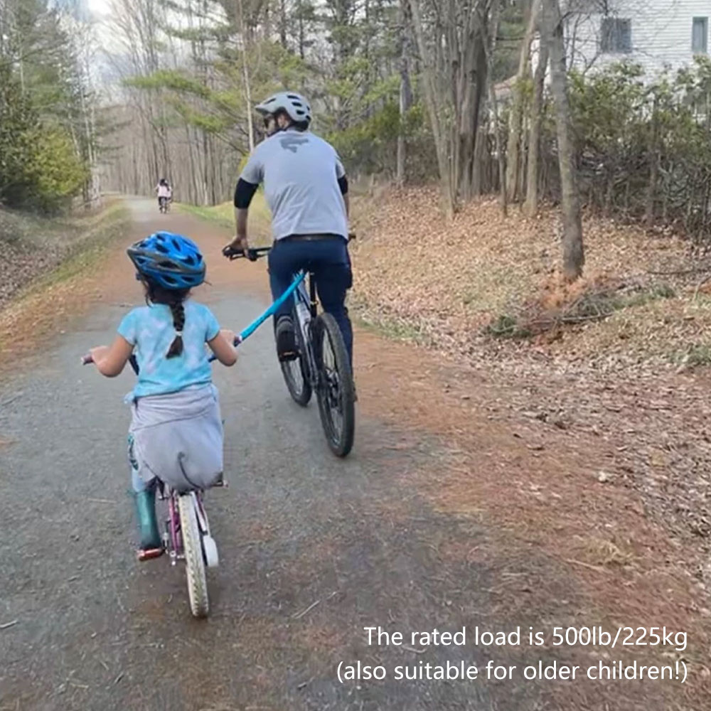 [Быстрое соединение] буксировочный трос соединен с седлом родителей, соединен с детским велосипедом через Полюс для быстрого использования или вокруг полюса, чтобы продлить время скалолазания.