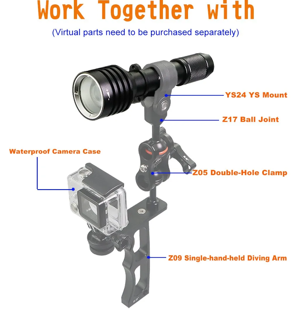 Дайвинг зажим с YS крепление 24 мм 30 мм для подводный Электрический фонарик для дайвинга