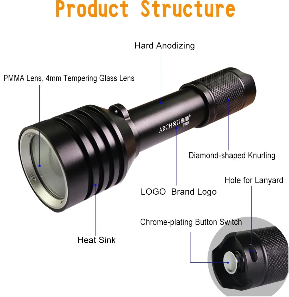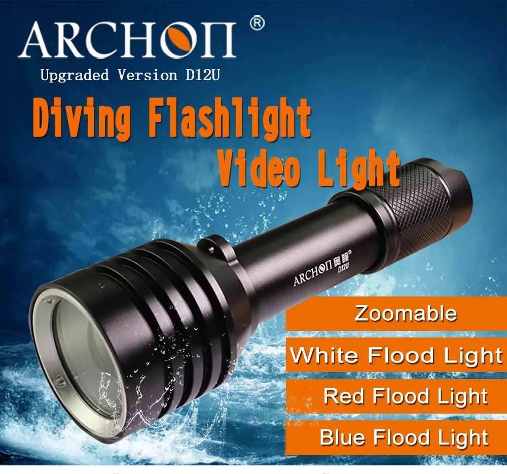 ARCHON D12U светильник для дайвинга 100 м масштабируемый белый красный синий светильник CREE светодиодный 1200 люмен