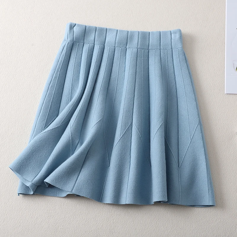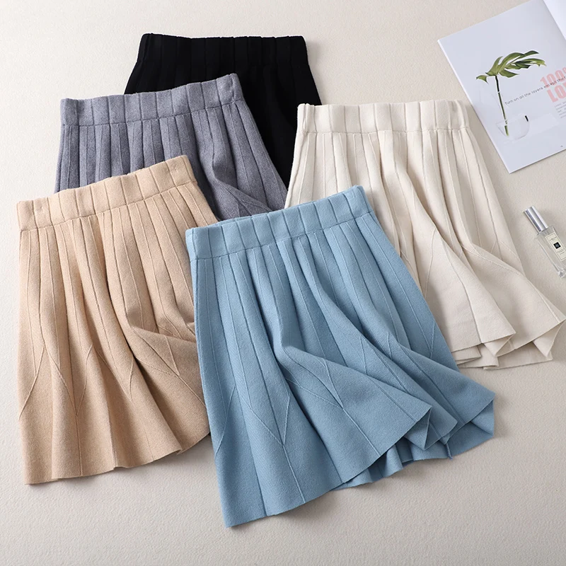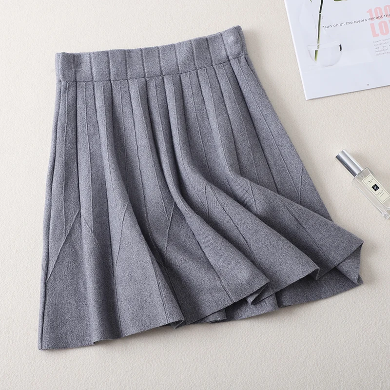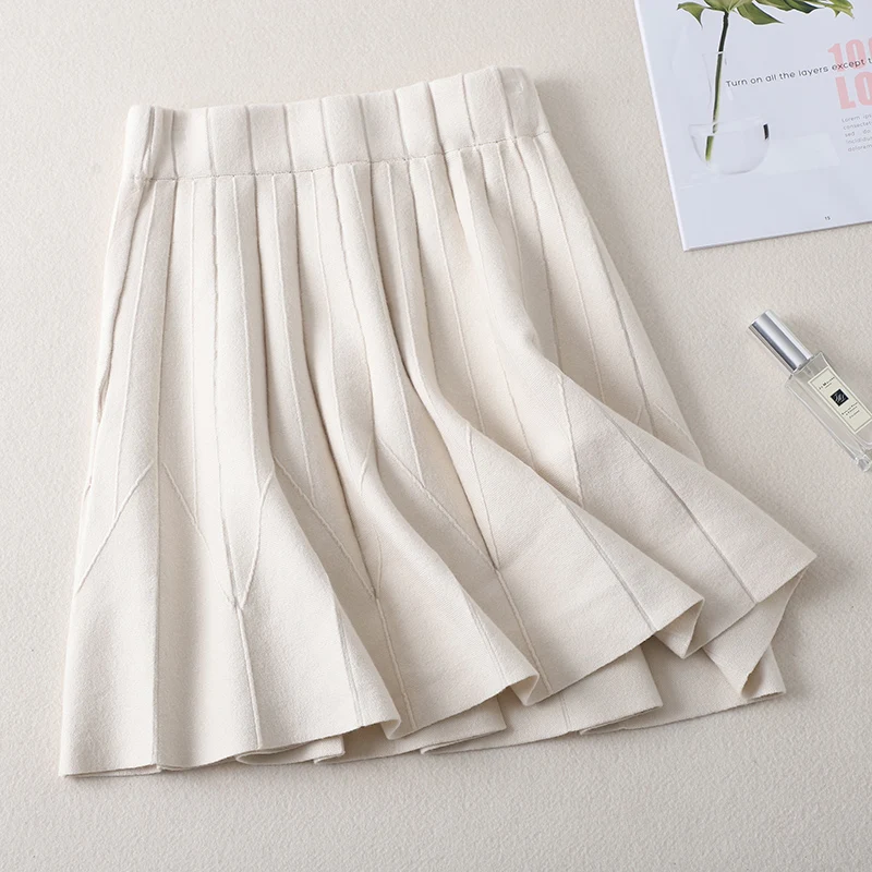 Осенне-зимняя трикотажная Женская мини-юбка с эластичной резинкой на талии, трапециевидная короткая юбка, элегантное бальное платье, вязаная Повседневная винтажная юбка M372