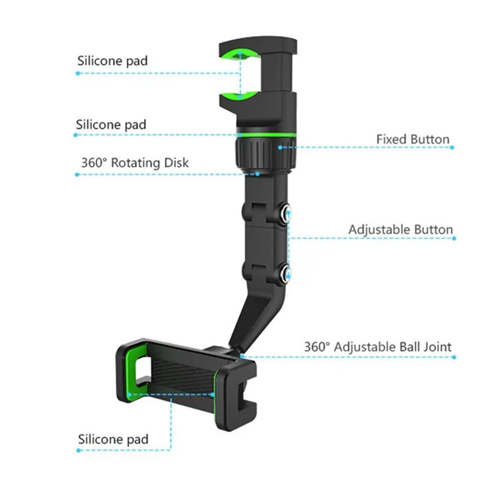 Этот кронштейн позволяет установить мобильный телефон или GPS на зеркало заднего вида, удобно для сенсорного экрана одной рукой во время вождения, и вы можете настроить маршрут навигации только одной рукой, чтобы обеспечить безопасность вождения и успокоить вашу семью.