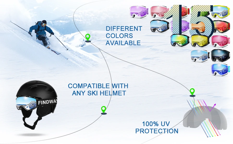 Findway-это Лидирующий бренд, направленный на проектирование, разработку и производство высококачественных лыжных очков для глобальных пользователей, а также обслуживание мирового потребителя. Видение нашей команды заключается в том, чтобы непрерывно обеспечивать высококачественный внешний образ жизни для глобальных пользователей. Наслаждайтесь отдыхом на открытом воздухе, катайтесь на лыжах, Наслаждайтесь жизнью!
