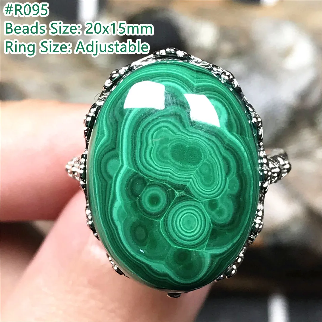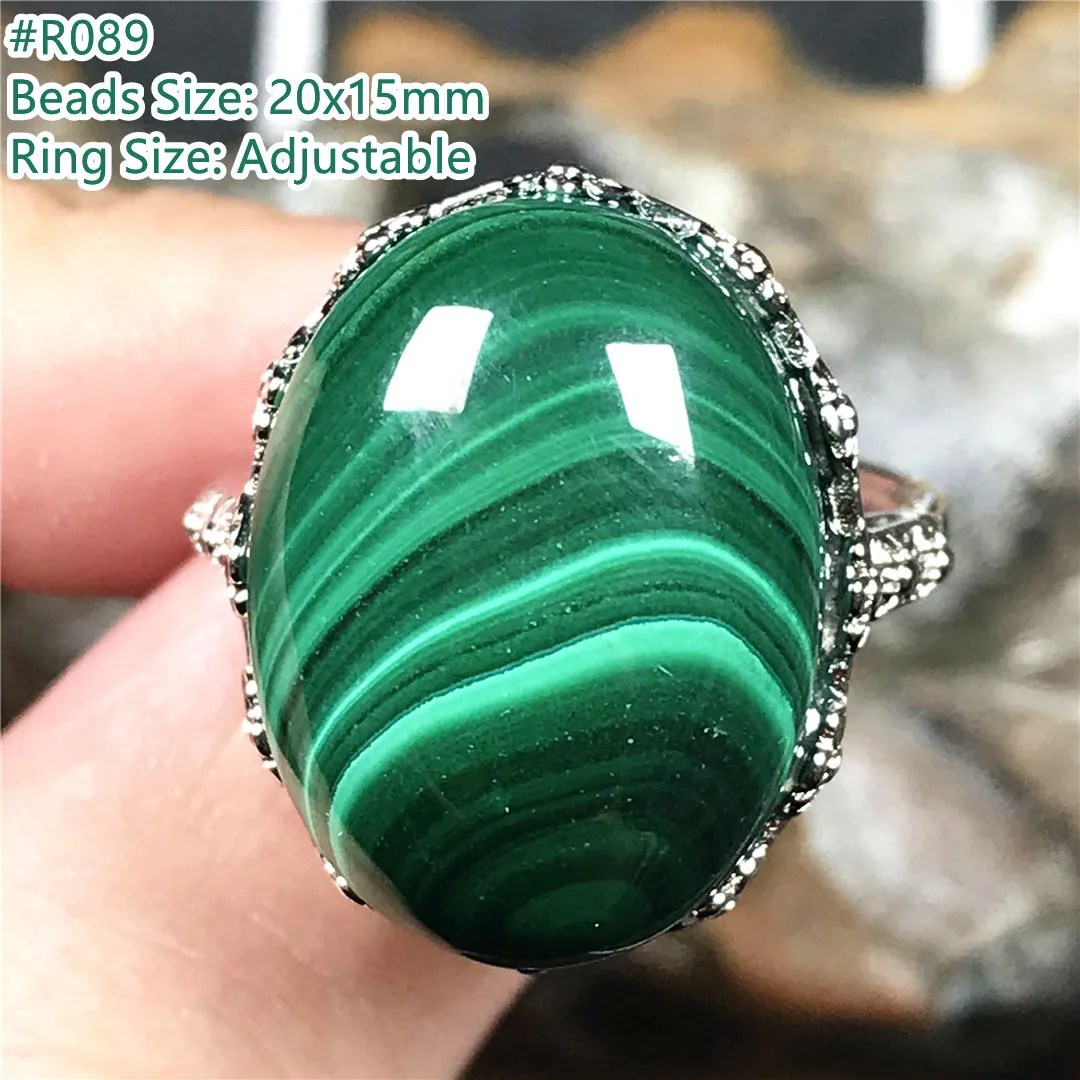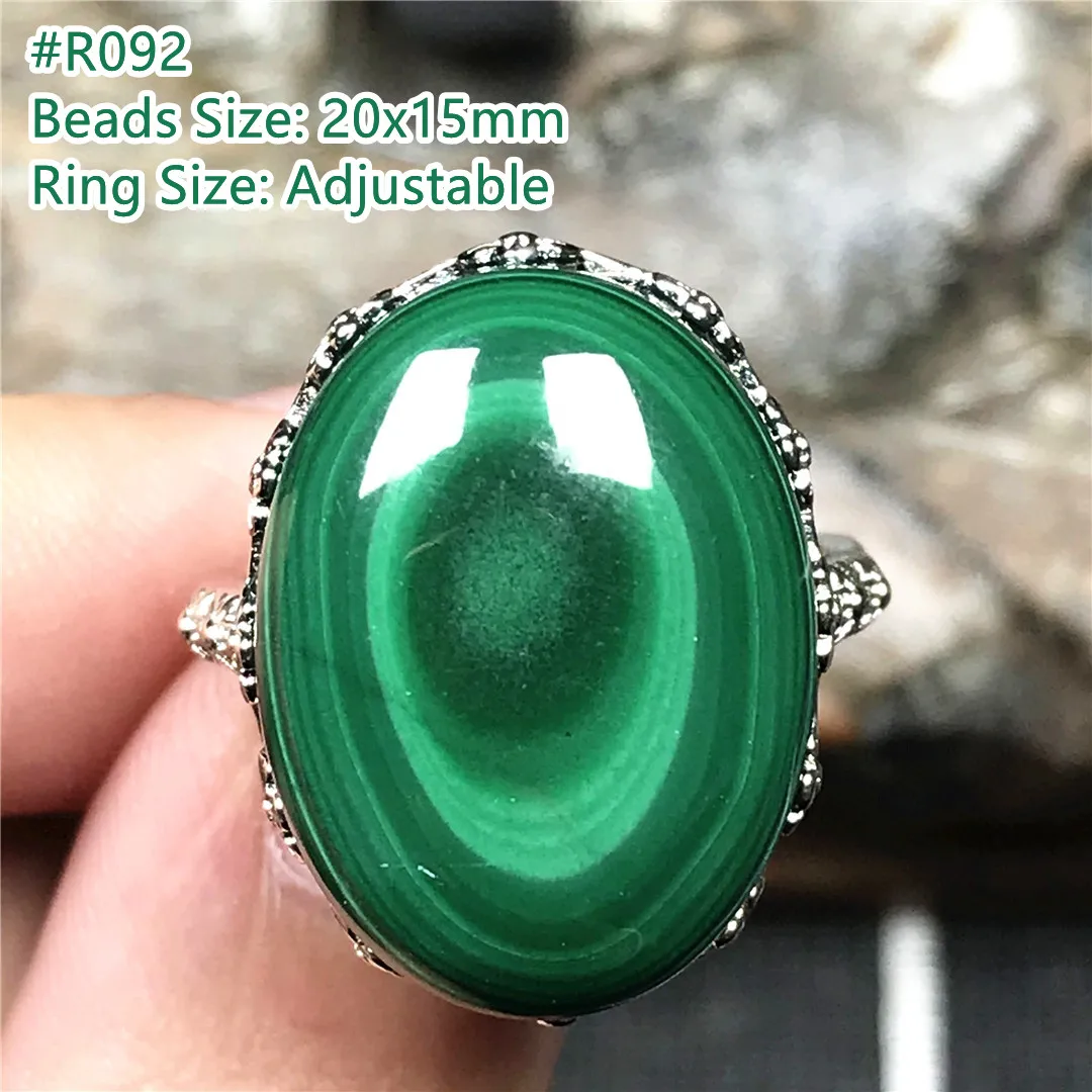 Топ натуральный зеленый малахитовый хризоколла кольцо ювелирные изделия для женщин мужчин исцеляющий подарок овальные бусины Кристалл серебро регулируемое кольцо AAAAA Прямая поставка