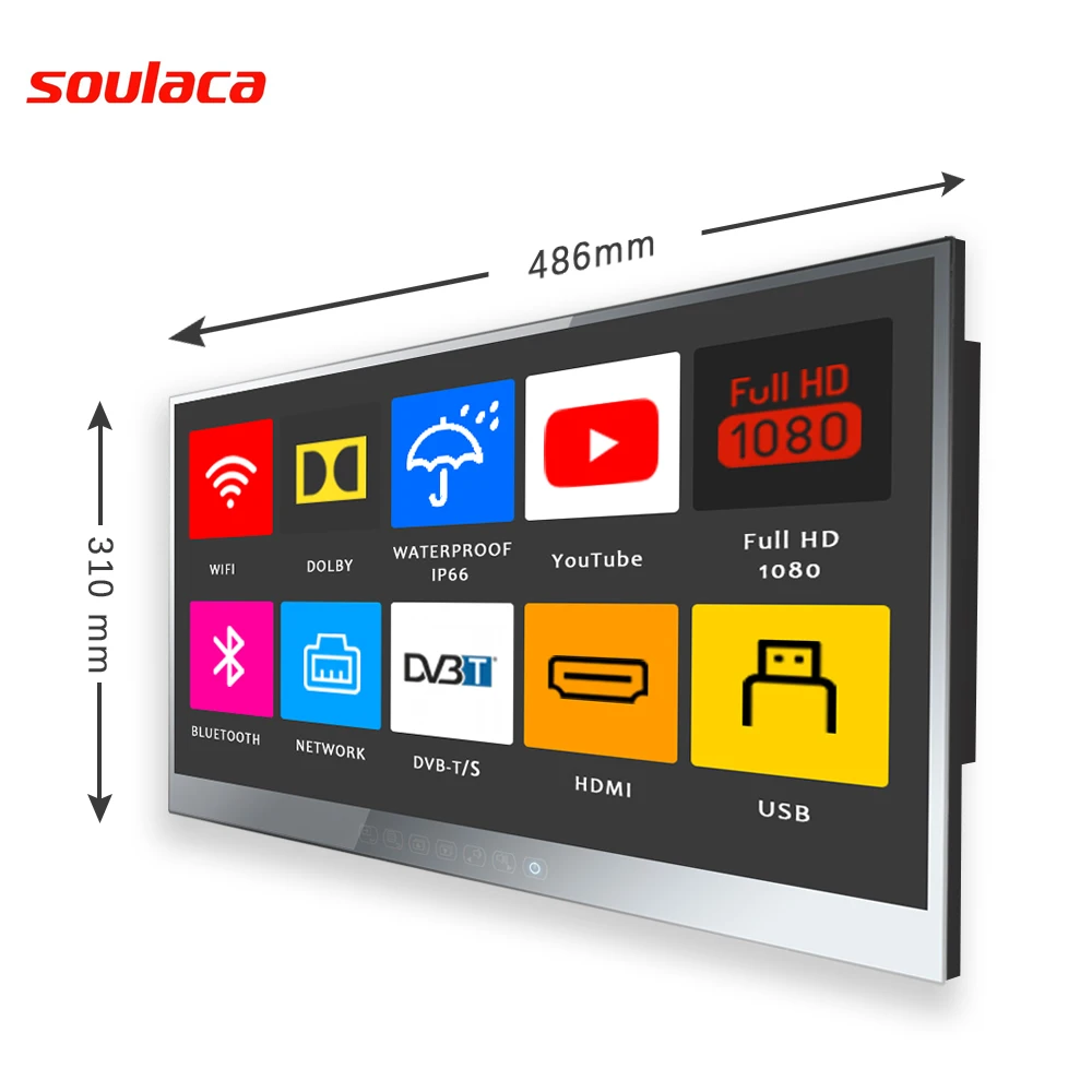 21,5 "Android 9,0 обновление водонепроницаемый смарт ТВ. Это не просто телевизор, а не просто зеркало. Это зеркальный телевизор. Скрытая за зеркалом из закаленного стекла.
