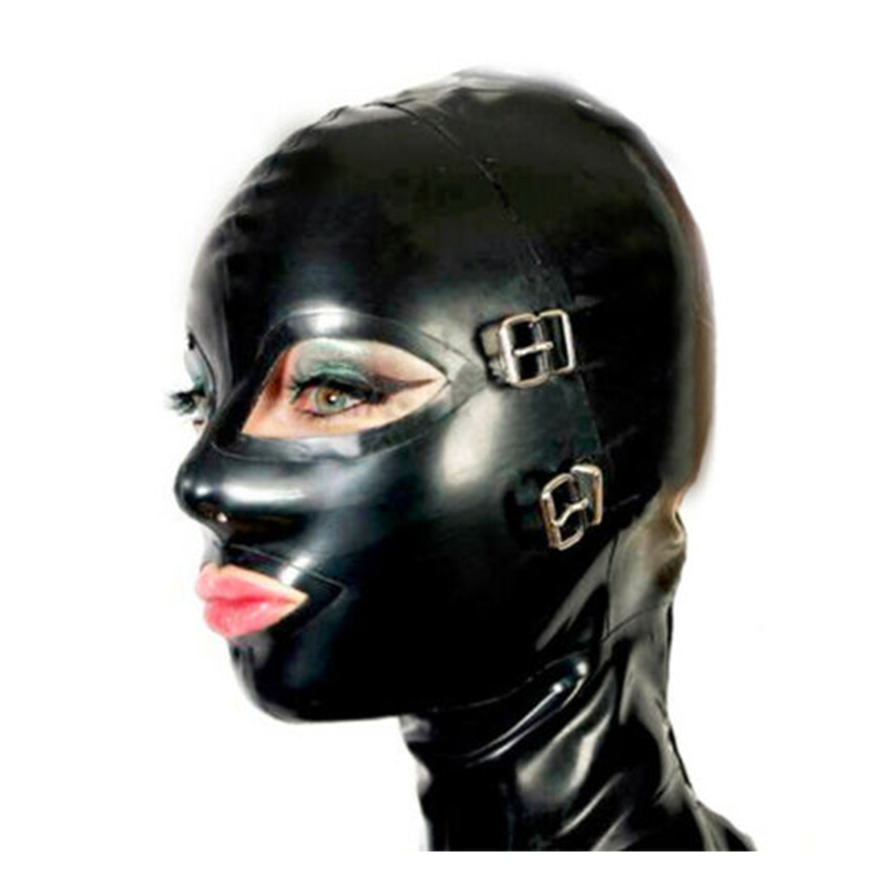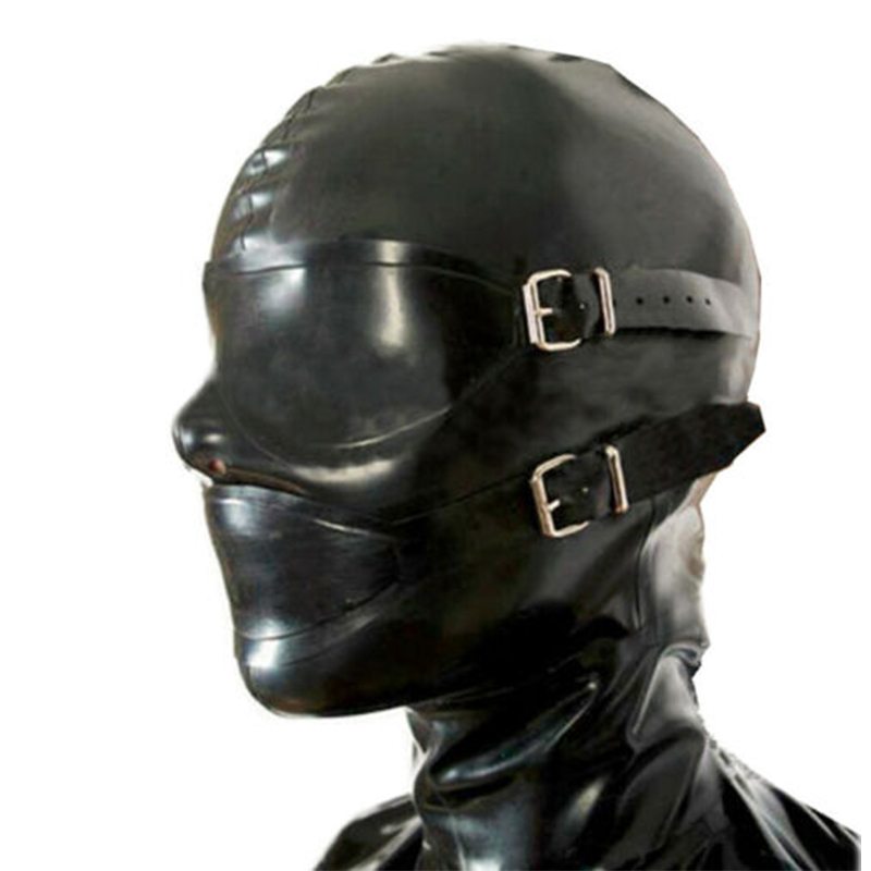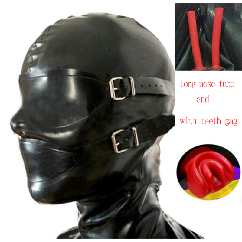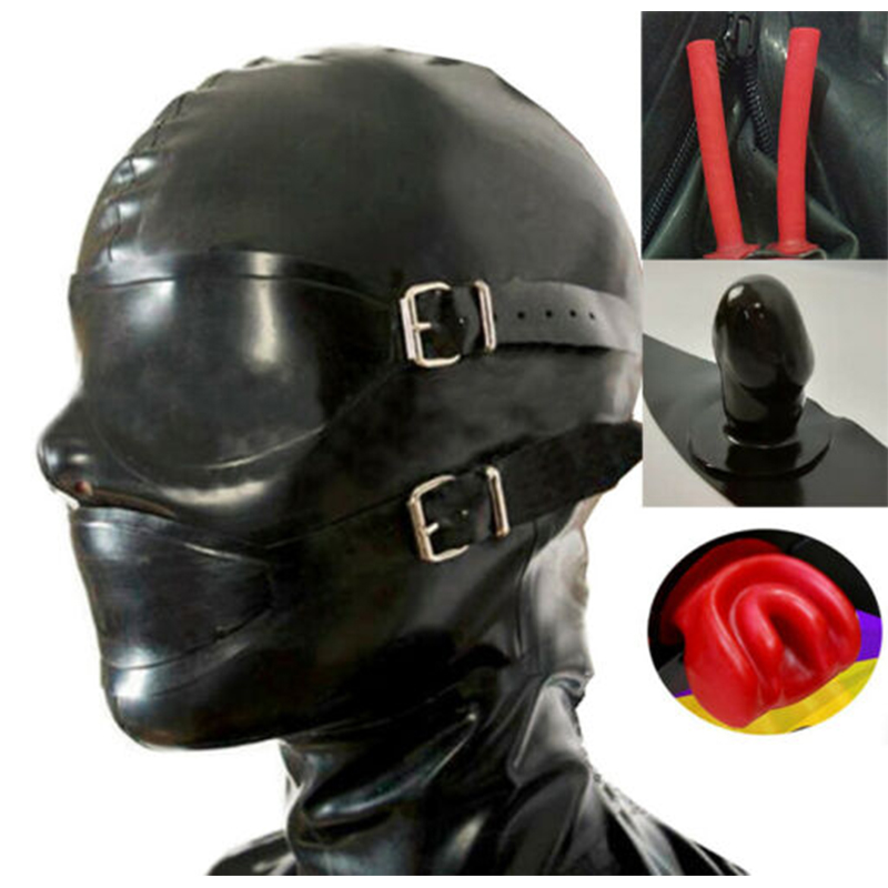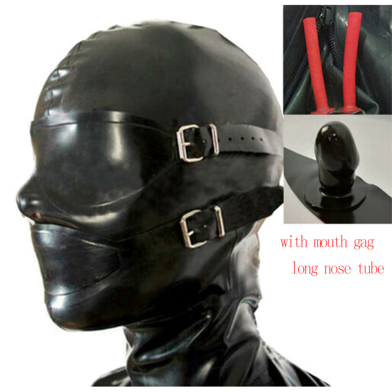 Черная латексная маска резиновый капюшон с полой оплеткой туба может блонд парик чешуя глаза крышка и Кляпы для рта с задней молнией настроить