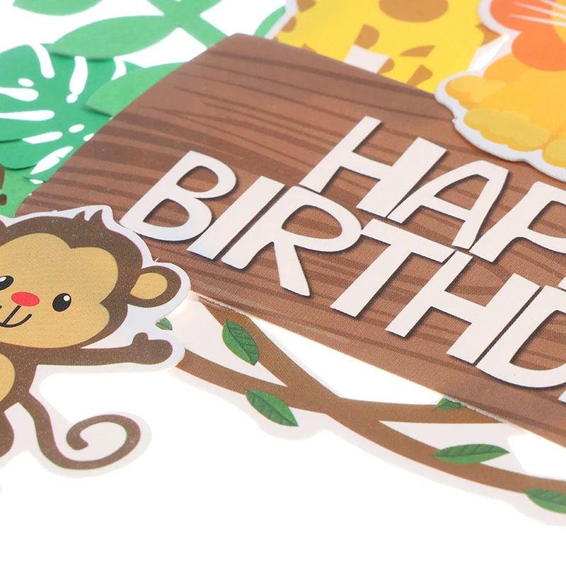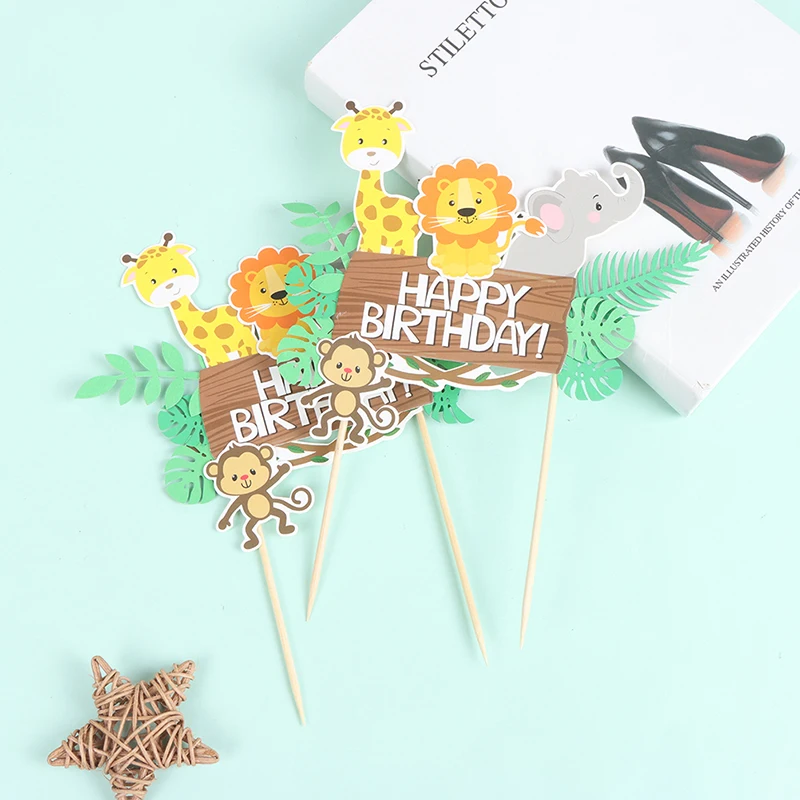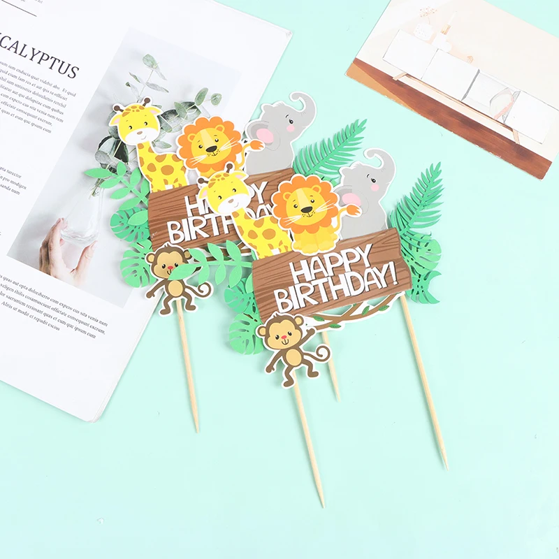Woodland Amimals счастливые топперы для торта на день рождения джунгли сафари торт Декор лес Лев Жираф Обезьяна С Днем Рождения Декор для детей