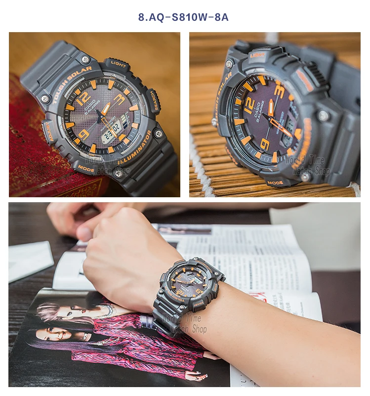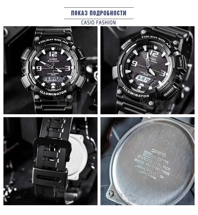 Чехол/рамка Материал: смолаПолимерная лентаПолимерное стеклоНеобритВодонепроницаемость 100 метровСветодиодный светильник (только ЖК-дисплей)Выбор продолжительность освещения (1,5 секунд или кнопку в течение 3-х секунд), тускнеющееНа солнечной батарееМировое время31 часовая зона (48 городов + согласованное универсальное время), переход/выключение дневного света, обмен между домашним городом и мировым временемСекундомер 1/100 секундыИзмерительная Емкость: 59'59.99''Режимы измерения: истекшее время, время разделения2 таймера обратного отсчетаМожет использоваться во время Интервальных тренировок, которые чередуются между двумя разными режимами.Единица измерения: 1 секундаДиапазон входного сигнала: от 00'05 до 99'55 "(с шагом 1 минуты и шагом 5 секунд)Другое: Количество повторов от 1 до 105 ежедневных будильниковСигнал ежечасного времениИндикатор заряда батареиЭнергосбережение (дисплей остается пустым для экономии энергии, когда часы остаются в темноте)Полностью автоматический календарь (до 2099 года)Формат 12/24 часовКнопка включения/выключенияРегулярное хронометражАналог: 2 стрелки (час, минуты (ручная работа каждые 20 секунд)Цифровой: час, минуты, секунды, часы, месяц, на каждый день, 6-язык день недели индикатор (на английском языке, португальский, испанский, русский, французский, Пособия по немецкому языку, итальянском языках)Точность: ± 30 секунд в месяцПриблизительно Время работы батареи:10 месяцев на перезаряжаемой батарее (период работы при нормальном использовании без воздействия на светильник после зарядки)23 месяца на перезаряжаемой батарее (период работы при хранении в полной темноте с функцией экономии энергии после полной зарядки)